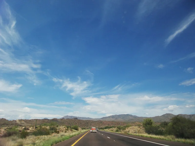 The next morning we drove on through the deserts of Arizona. The topography of this land changes from lowland deserts to large and rolling evergreen covered hills. Leaving California, the sight of greenery came as a welcome change to the yellowing landscape brought on by drought. We continued on through the desert stopping for gas breaks.