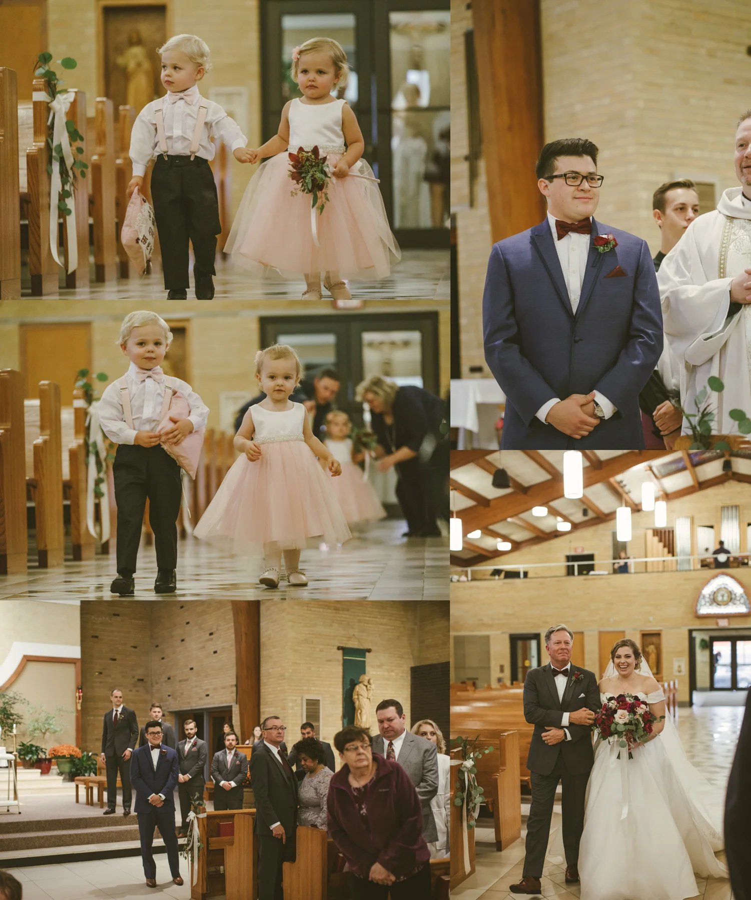 The Catholic ceremony was beautiful. The ceremony itself consisted of all the traditional pieces of a Catholic Nuptial Mass, beginning with the procession of the bridal party and adorable ringbearers/flowergirls before Allison was revealed to the crowd. A huge smile came across Tim’s face once he was finally able to see Allison in all her beautiful bridal attire.