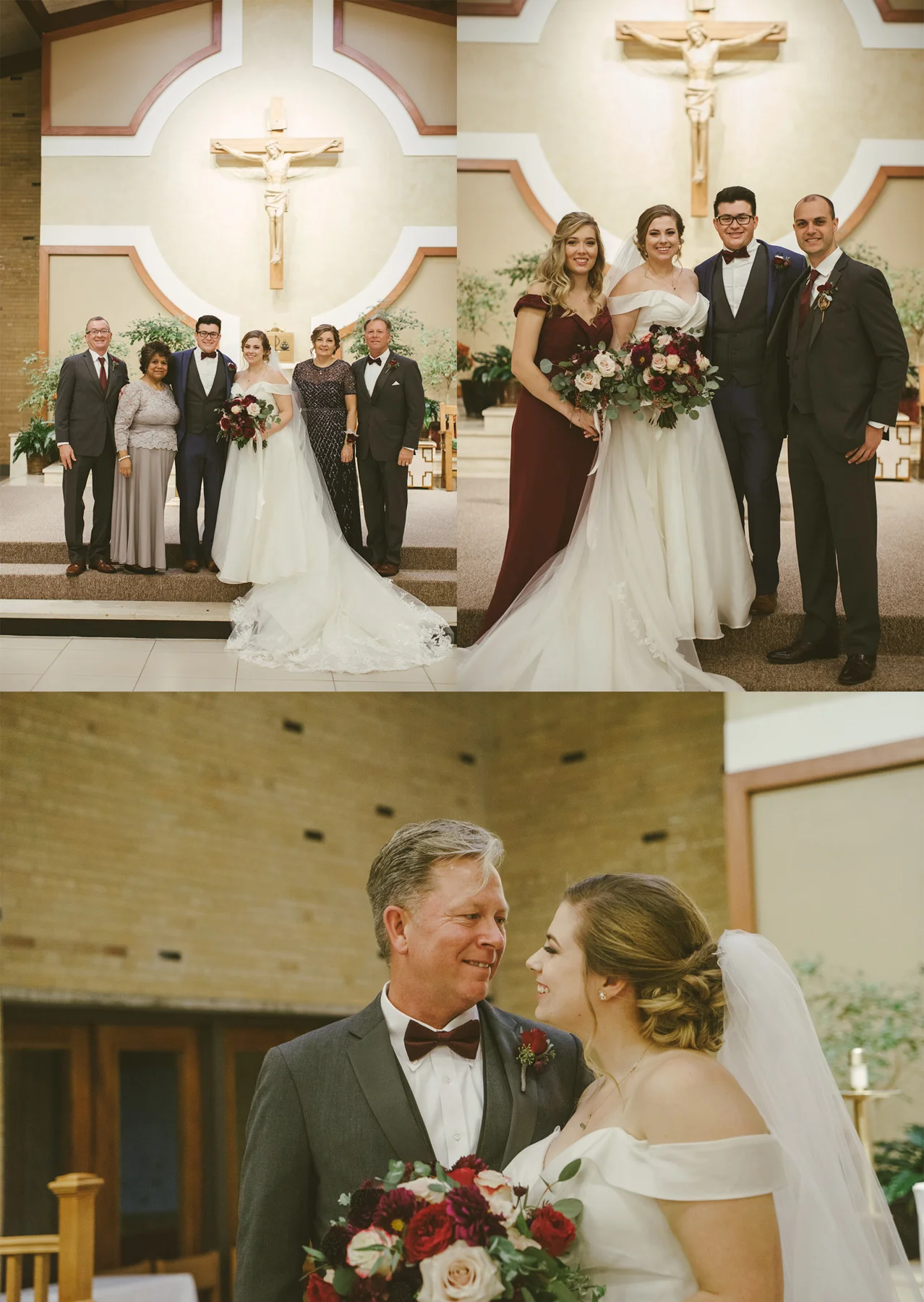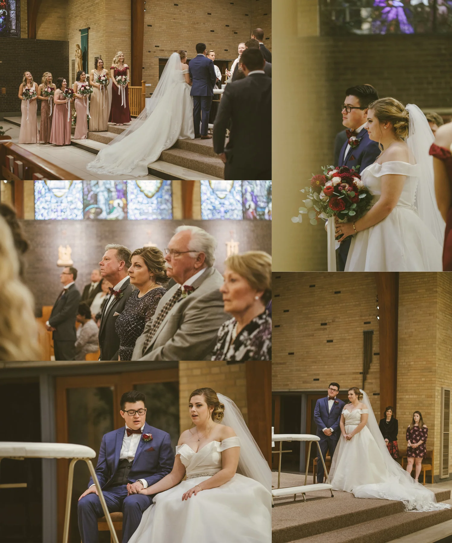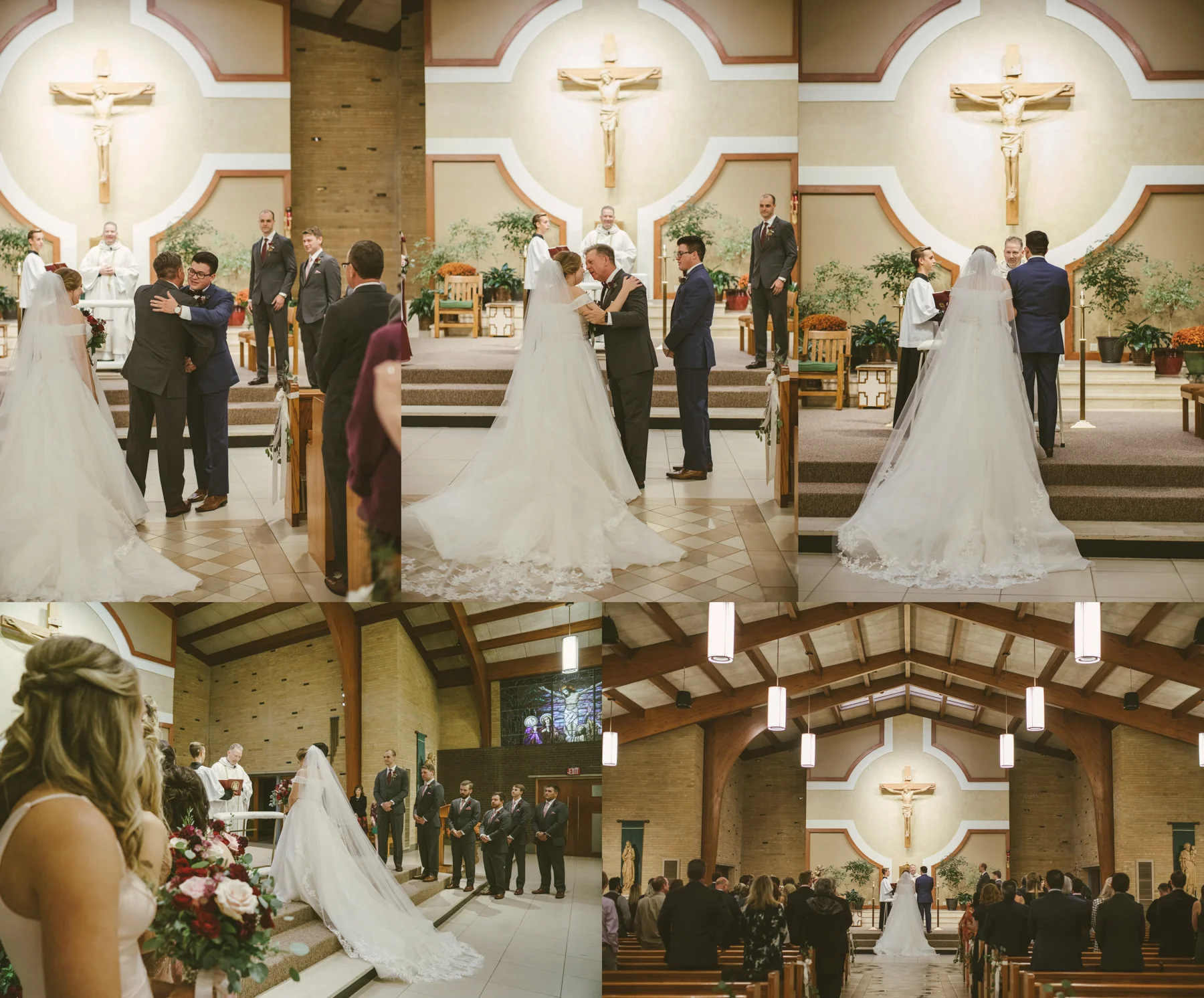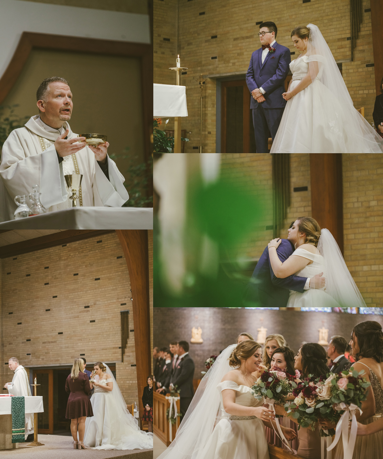 Allison’s dad handed her off to Tim and the bridal party gathered around as Allison and Tim stood side-by-side near the altar. The priest shared a few words and a song was sung before everyone was invited to take a seat.