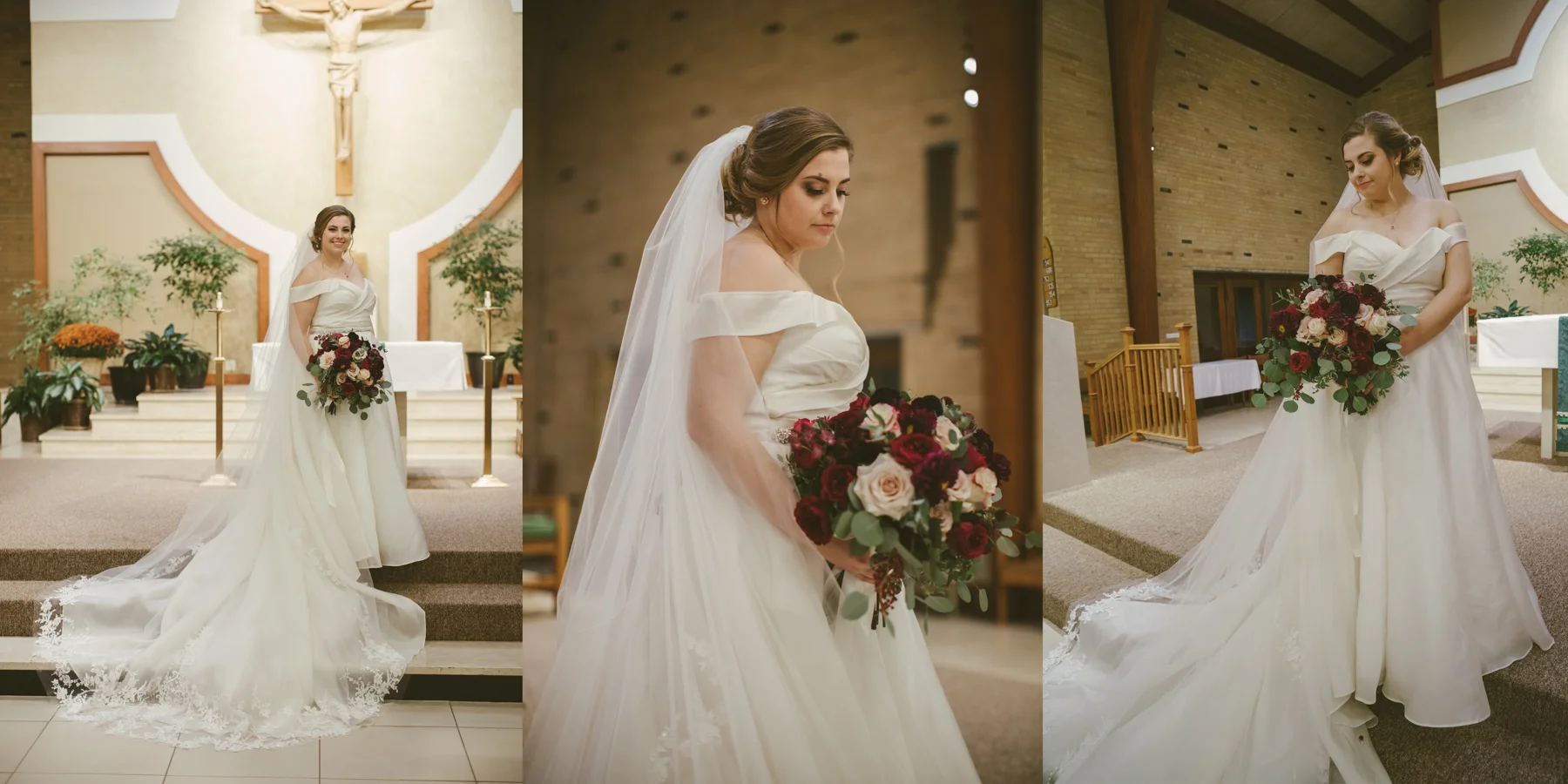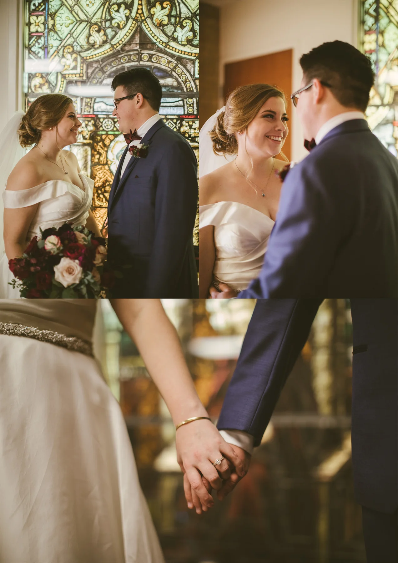 We were happy to be able to capture some portraits of the two of them married in the church as we weren’t yet sure how the weather was looking post-hail/ rain outside and didn’t know if there’d be dry weather for portraits of them in the outdoor location at all.