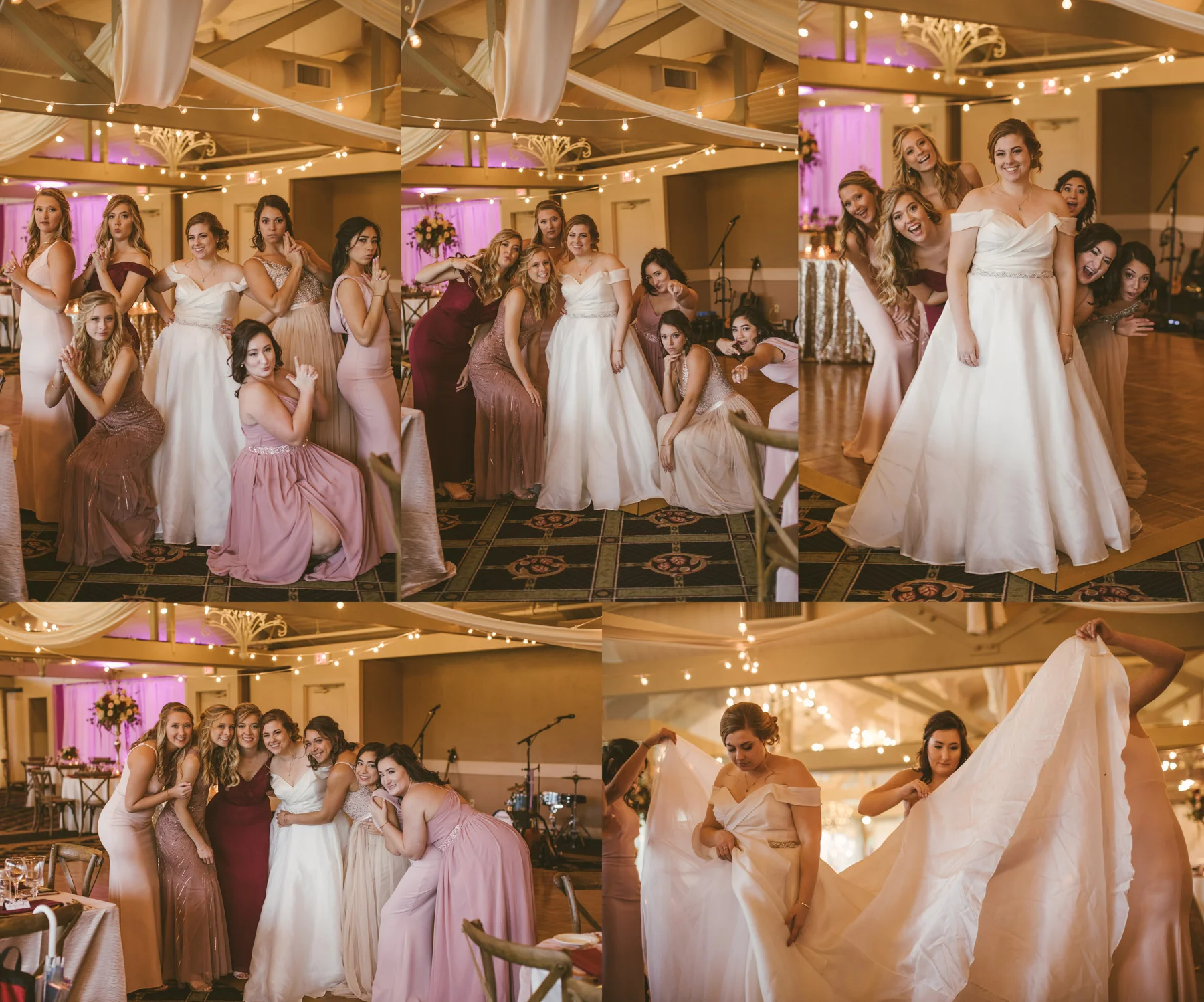 The girls bustled Allison’s dress while we photographed all of the details around the reception and everyone enjoyed cocktail hour! We had only been about 25 minutes early to Morris Park due to the cancelled additional portraits, but all of the bustling, cocktail hour, and detail photos of the reception actually took that amount of time, so it worked out perfectly!