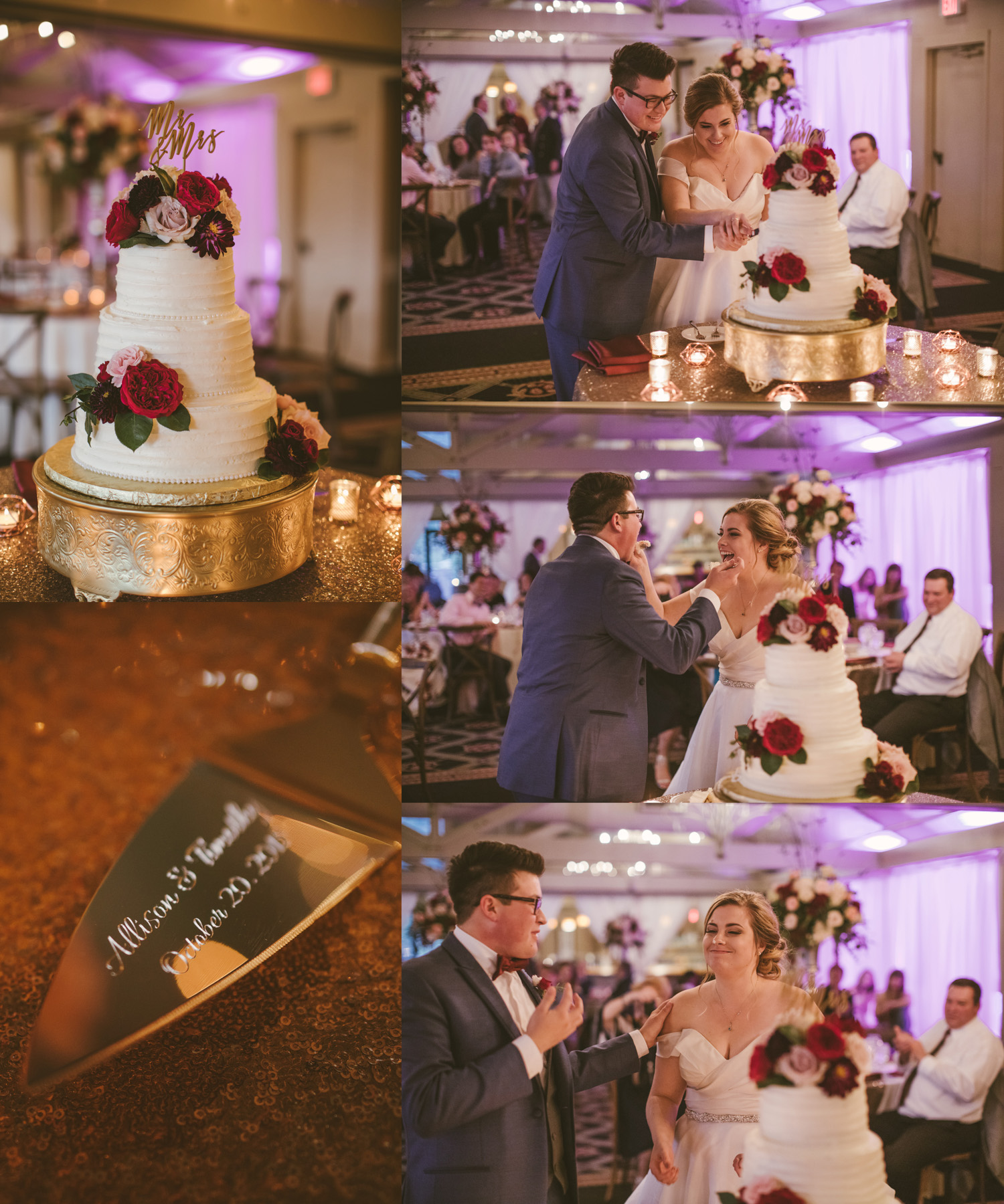 After their FIrst Dance, these two did their Cake Cutting! They fed each other sweetly, then Tim added a bit of icing to Allison’s nose!