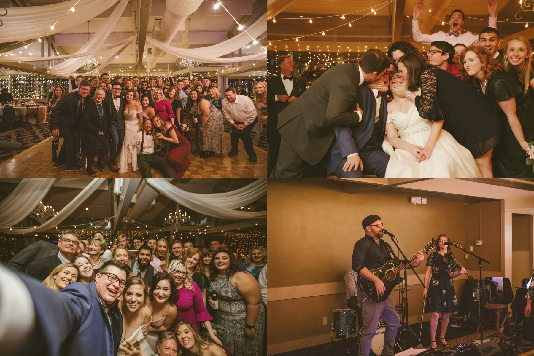 After the garter toss, we captured everyone Photobombing Allison and Tim on the dance floor for about 5 minutes straight and then helped them capture a selfie with all of their guests before we packed up to leave! As we were packing up and leaving, the live band Justin Staublin started and we snapped an additional few photos of them and Open Dance starting! We grabbed a piece of C’est la Vie cake (best cake around- pistachio & champagne flavors by Courtney) and we were off.