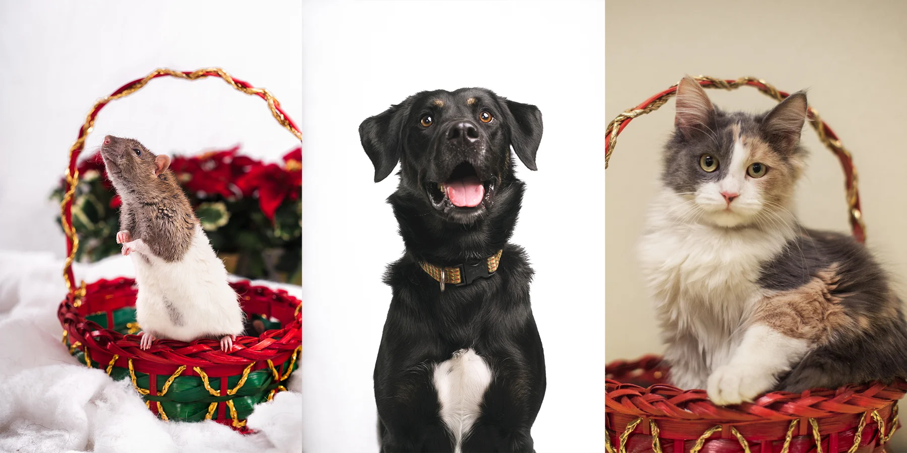 In 2015 some of you may remember that we photographed at the local Humane Society of St. Joseph County for 3 days straight to capture photos of 130+ animals in their care ready for adoption! This would normally cost someone thousands of dollars to have us capture (and more for licensing images), but we donated our services to get the animals adopted out! We photographed a whopping 75 dogs all in a studio setting (with our FULL studio lights, backdrop, etc.) and a ridiculous amount of cats… PLUS bunnies, rats, and more! We even got creative since they’d had a thrift sale right before and we used Christmas costumes on many of the animals (well, those who would tolerate it). It was an exhausting, crazy time trying to get each dog and animal to sit still and face the right direction, but SO many of the animals got adopted (wish we knew the percentage) due to the gorgeous and fun photos that we captured!