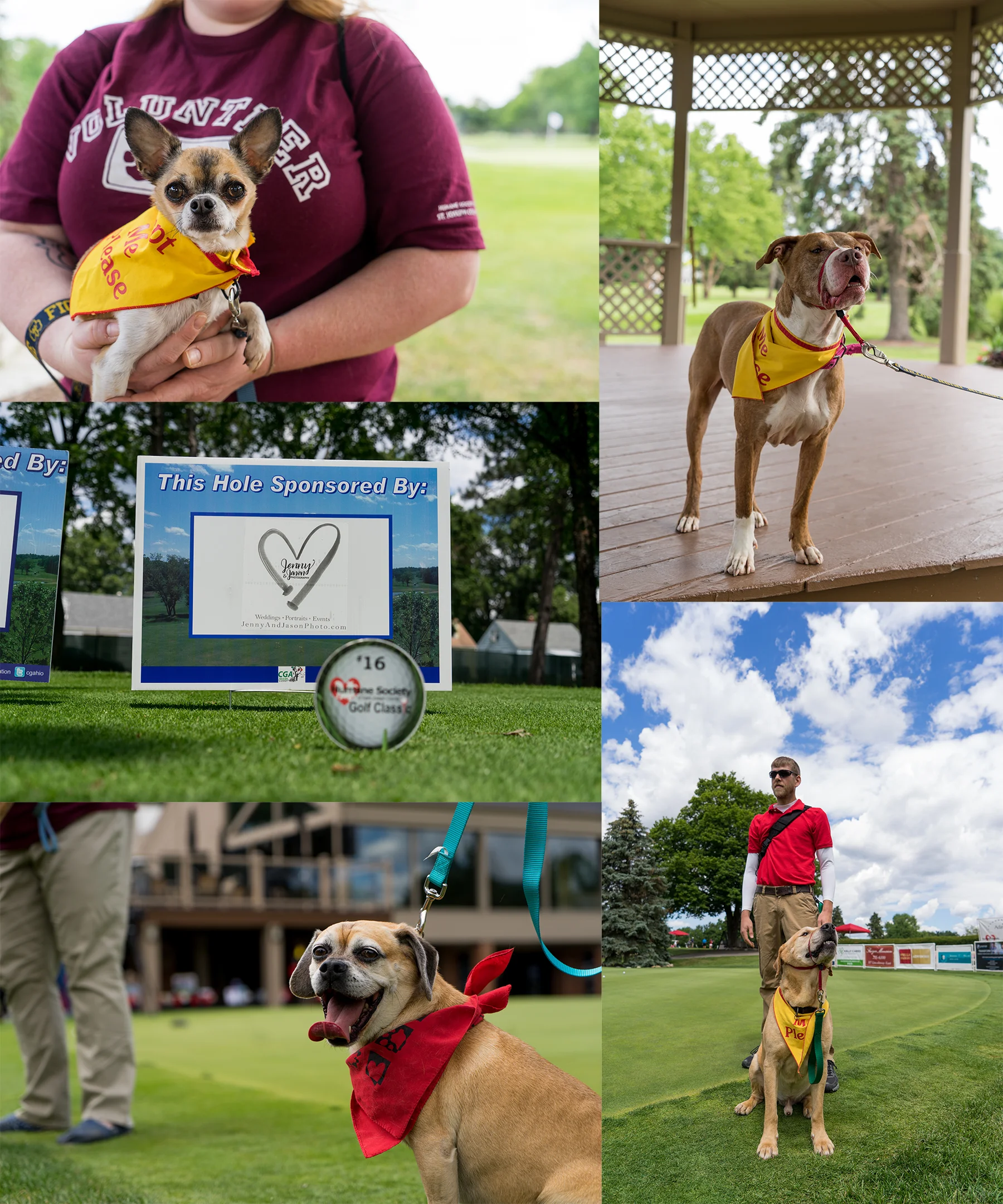 (Above are some of the adoptable dogs that the Humane Society brought to their past golf outings and below are some of the images we photographed, edited, and printed in a large format for the Humane Society!)