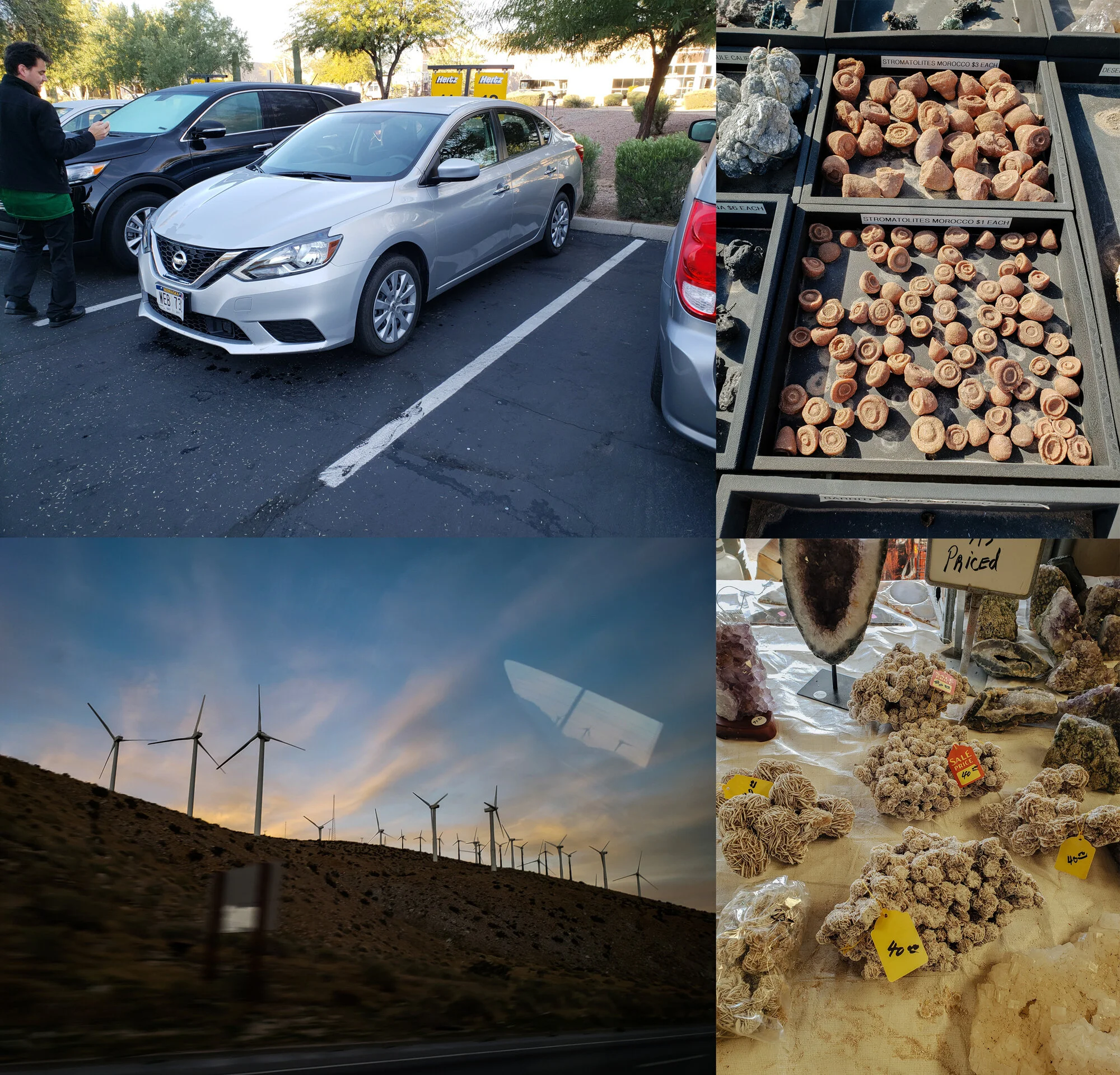 After 5 days in Arizona we headed to California after getting our rental car. We made the 7 hour drive a casual day and stopped off to enjoy gem and stone shopping as well as plant shopping-! We somehow got swept up in looking at stones for 5 hours and ate up even more time stopping off to get exotic plants for family members!