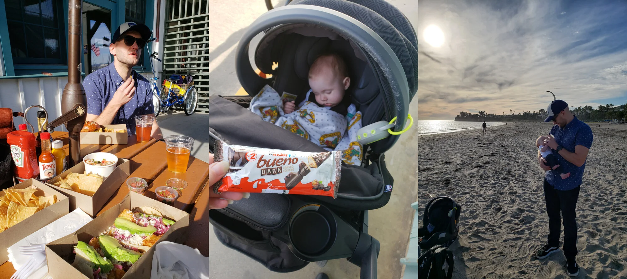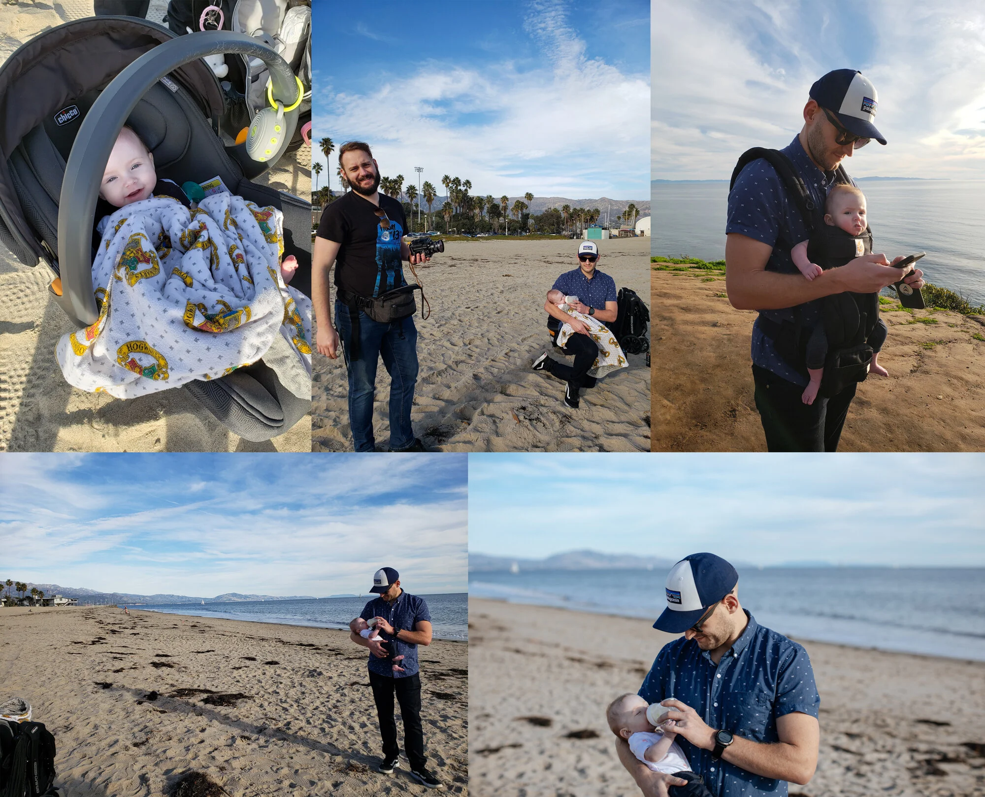 His brother’s wife was at a bachelorette party for the day an hour South, so we made the day an adventure day in nature heading first an hour north to try to catch a Farmer’s Market in Santa Barbara, grabbed tea & coffee, then headed to the beach for lunch, then ended at another gorgeous cliff side park for sunset. We haven’t held many babies outside of our clients’ babies for Newborn Portrait Sessions, so it was interesting getting used to 2 pups and a 4 month old baby all together!