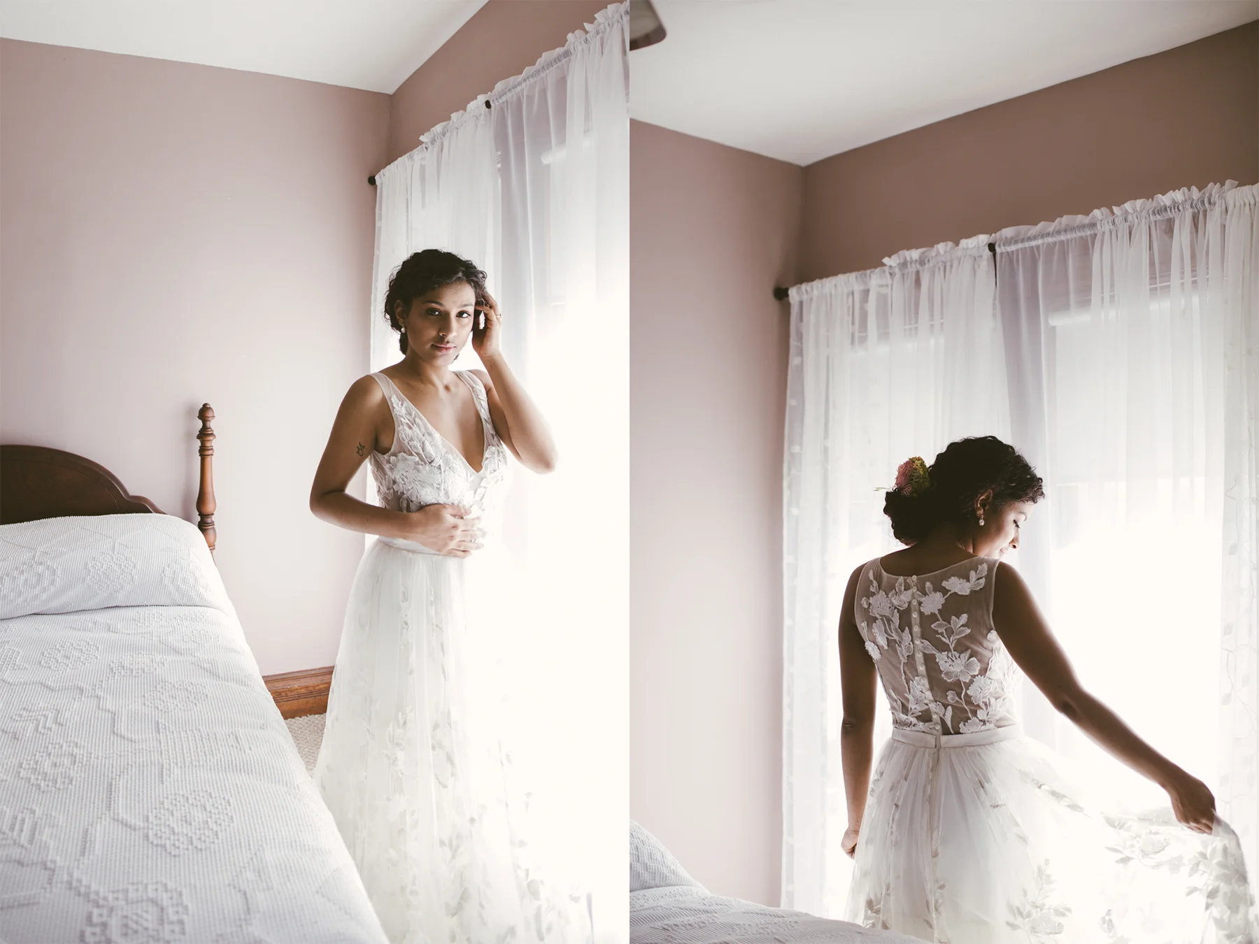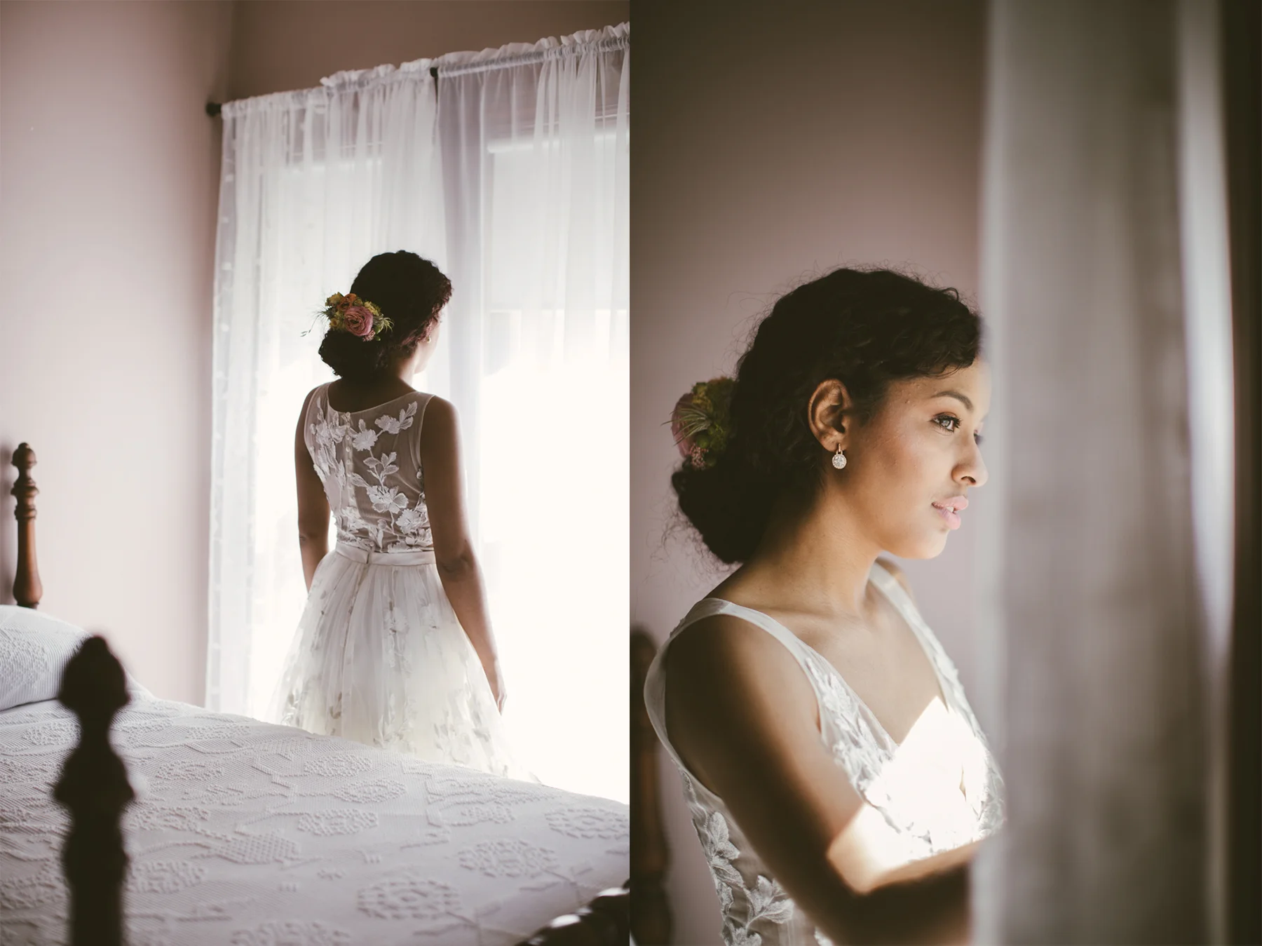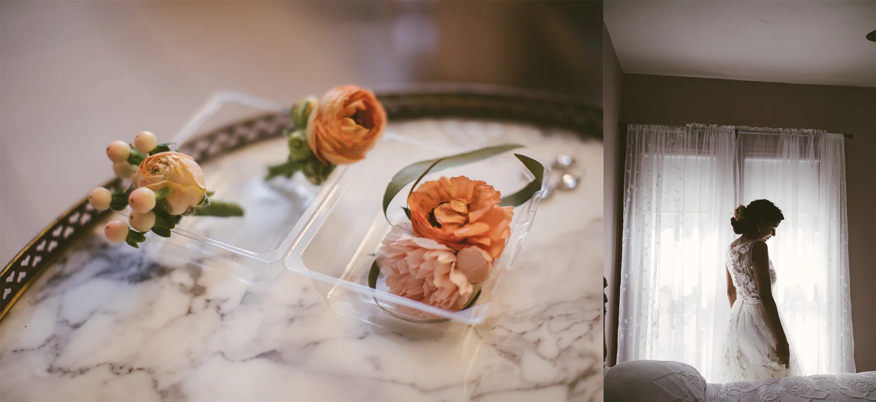Some of our favorite moments of the wedding day are the "prep" time: moments after the bride and groom are dressed and ready for the ceremony, but still in their respective "getting ready" spots. Often these "getting ready" spots are homes (bride's mom's home, their home, or another home), a hotel (2 separate rooms on separate floors often), the reception spot's separate prep locations, or at the ceremony spot's separate prep locations. We're lucky if the prep spot is neutral with very few decorations and we always hope the spots have large floor to ceiling windows! Most often there will be a bed directly in all of the photos since it's often a bedroom or hotel room that the bride gets ready in, though there are also bridal suites and other suites in general that have large non-bed rooms attached OR are a room specifically for wedding prep and have NO bed, rather just beautiful decorations, seats, and a plethora of mirrors. This spot at Stonegate Manor (in the manor itself) was absolutely gorgeous what with all of the white, the beautiful antique bed, and the room not covered in a million things or intense colors/ patterns!