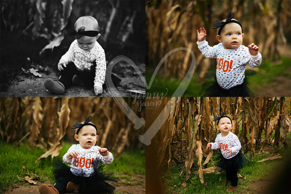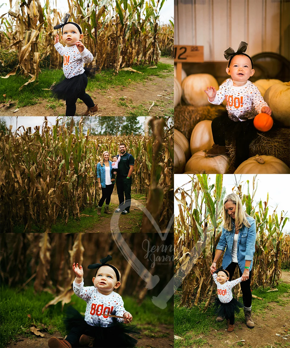 So this weekend was a doozy! One of our favorite parts was photographing the ever happy and adorable Leah McKee! Leah is one of (if not THE) happiest 11 month olds we've ever met. She giggled the entire time we were up in Michigan and was an absolute joy to photograph. She got to play between pumpkins and walk around a corn maze while in her awesome fall outfit! Her parents Morgan & Ryan even gave her the cutest tiny pumpkin which she seemed to love! (Can you believe her mom made the tutu & bow?! Stinkin' adorable.) We loved this little munchkin and can't believe how happy and photogenic she was! (Everyone should get themselves a little girl this happy!)