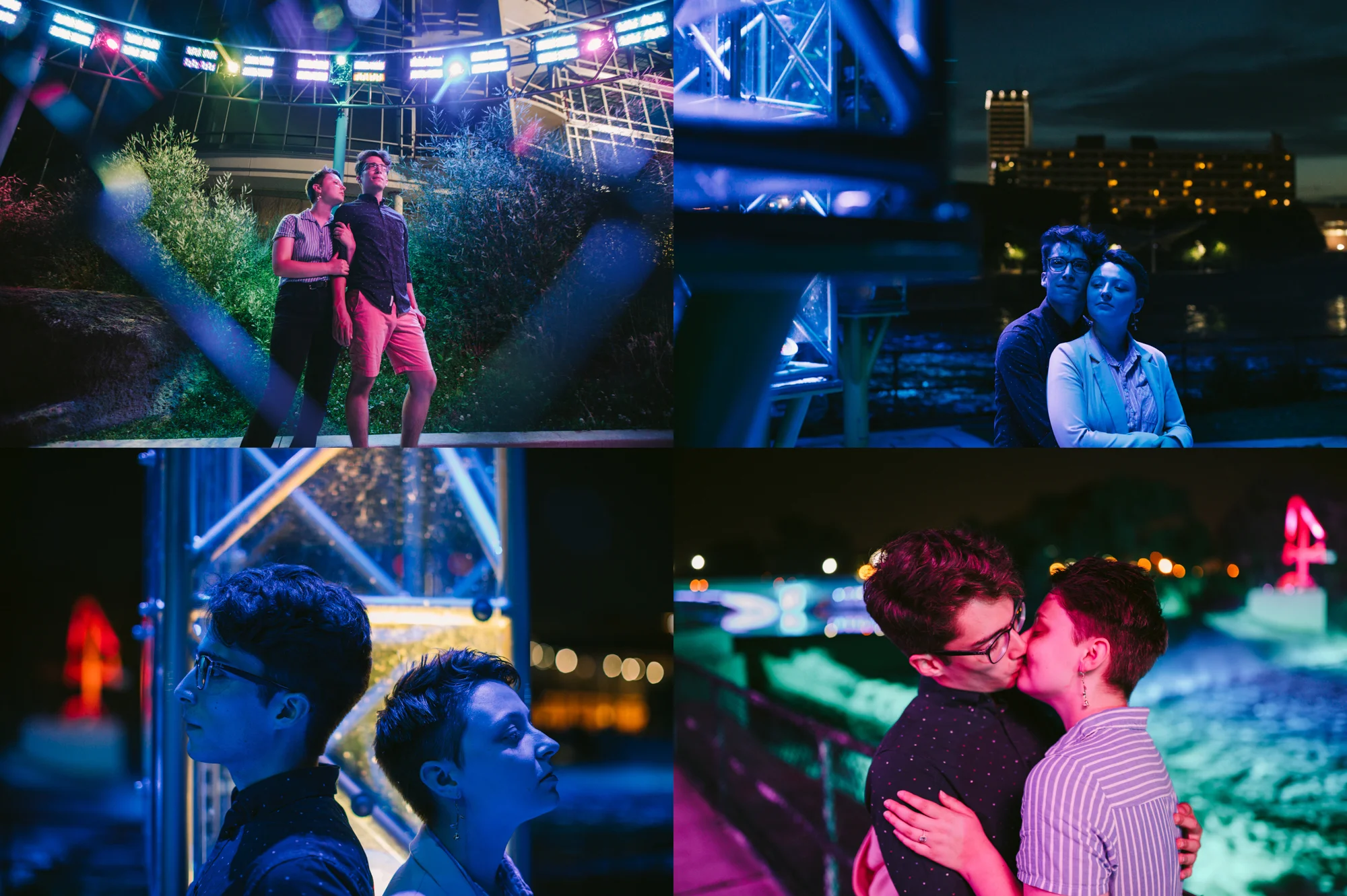 The last spot that we captured these two at was by the St. Joe River. South Bend erected beautiful statues that emit changing colors of light in 4 spots around the river and Bee (being the Museum Studies/ artsy student that she is) requested that we also capture these two there after sunset with the beautiful rainbow lights.