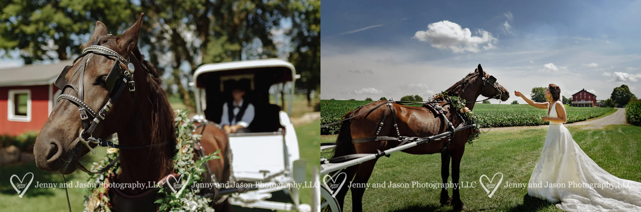 Next up we headed outside to the ceremony spot. There we photographed the couple under the covered bridge, captured a faux little “ceremony” of sorts, and captured images of them with the horse and buggy (that they actually DID get to ride to the reception venue)!