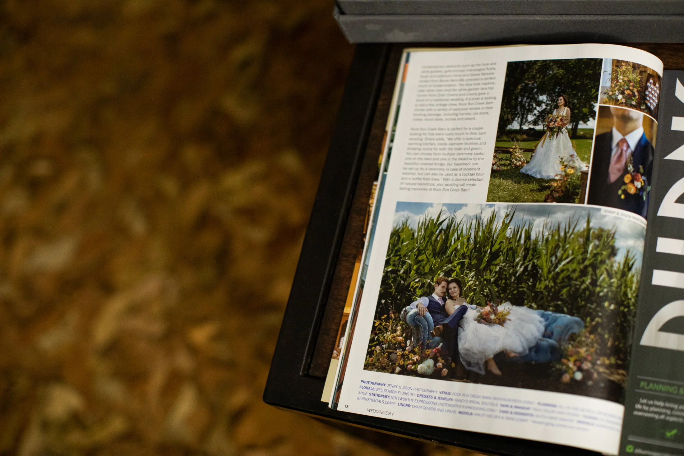 Wedding Day Magazine published 12 of the photographs that we captured into their December 2019 quarterly issue of the printed magazine about 2.5 months ago, then while we were with our immediate families on our well-deserved Christmas visiting our immediate families’ homes in Arizona & California last month Mid-January they then published a blog post of the Styled Shoot on their website including 75 of the images we photographed, styled, and edited! We literally just got the physical magazine 2 weeks ago when we returned, so we’ve been enjoying seeing the images printed in the physical magazine for the first time. Below are our photographs that were featured in the physical magazine in December 2019 2.5 months ago and THEN those 75 of our photographs featured on their website’s blog last month in mid-January 2020 can be found here: https://weddingday-online.com/wedding-articles/wedding-prairie-weddingday-exclusive-style-shoot-rock-run-creek-barn-goshen-indiana