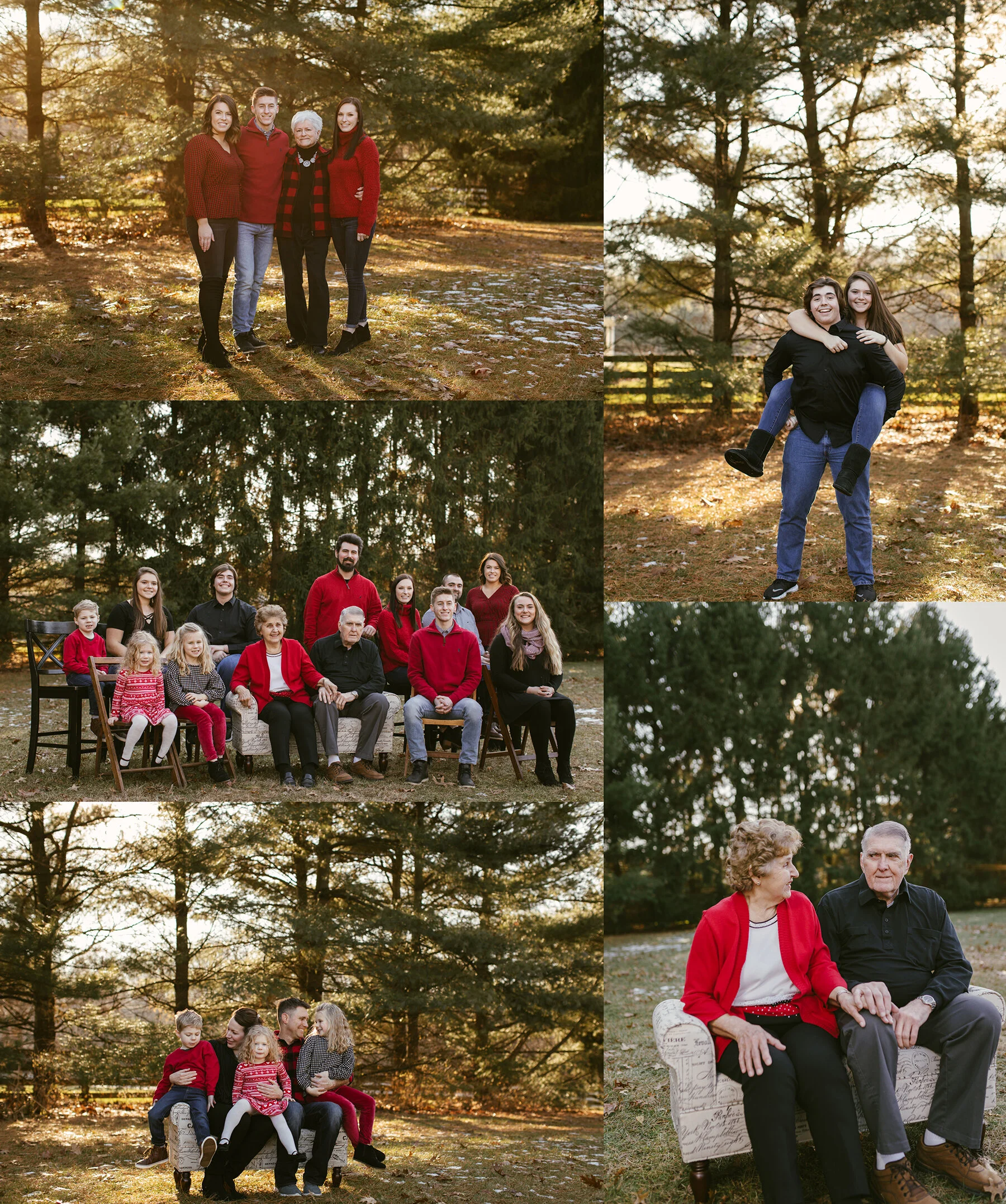 Susie planned everything with us so that we could capture the Christmas Family Portrait Session at her brother & sister-in-law’s home! We came by and scouted out the home the week of their Session and loved the idea of capturing the portraits outside if the weather permitted. Since we didn’t get snow in December really, the weather was perfect and it was literally the warmest day of the week for their Session, so we were able to photograph it ALL outside away from the food and partying inside!