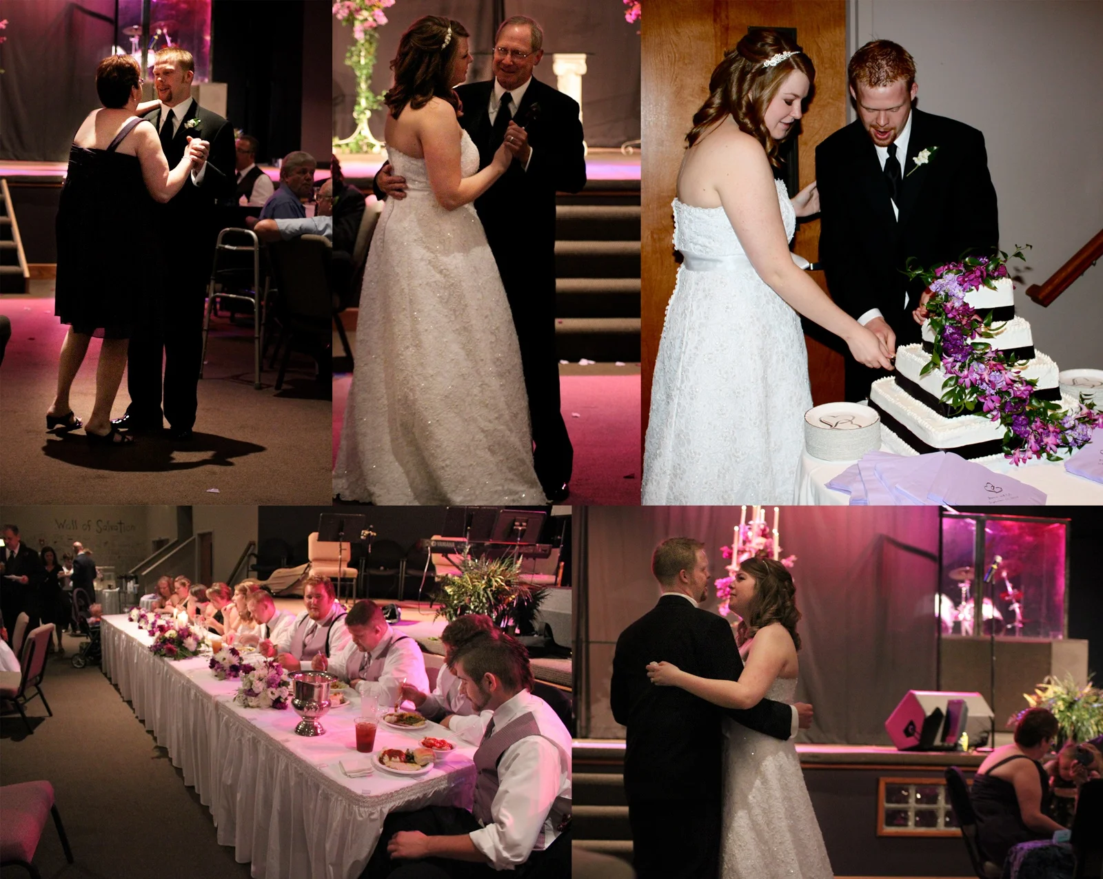 The wedding was a dry Christian wedding, so everything was nice and pleasantly calm as Kyle and Joanna enjoyed their First Dance, the mother-son dance, and father-daughter dance. They enjoyed their full dinner at their grand table up at the front near the stage, then it was time for the cake cutting! These two were very sweet as they cut their cake which was one of the last events of the night and reception itself!