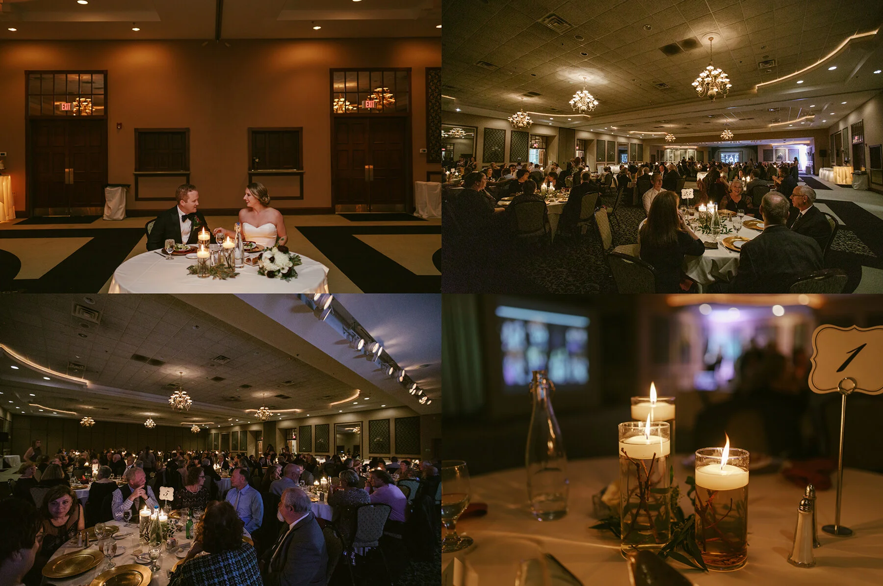 Once Cocktail Hour started to wind down everyone headed into the reception-! The hall itself is beautiful and much like Notre Dame’s Morris Inn on campus. The lights were turned down in there with candles spread throughout on the tables and gold embellishments.