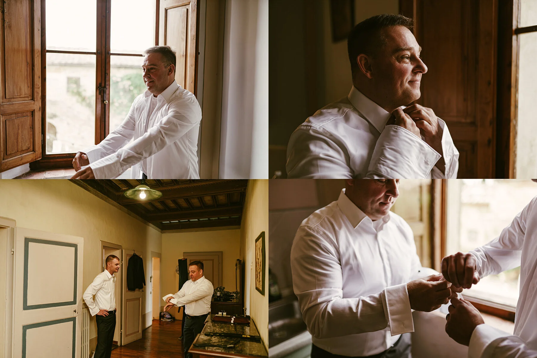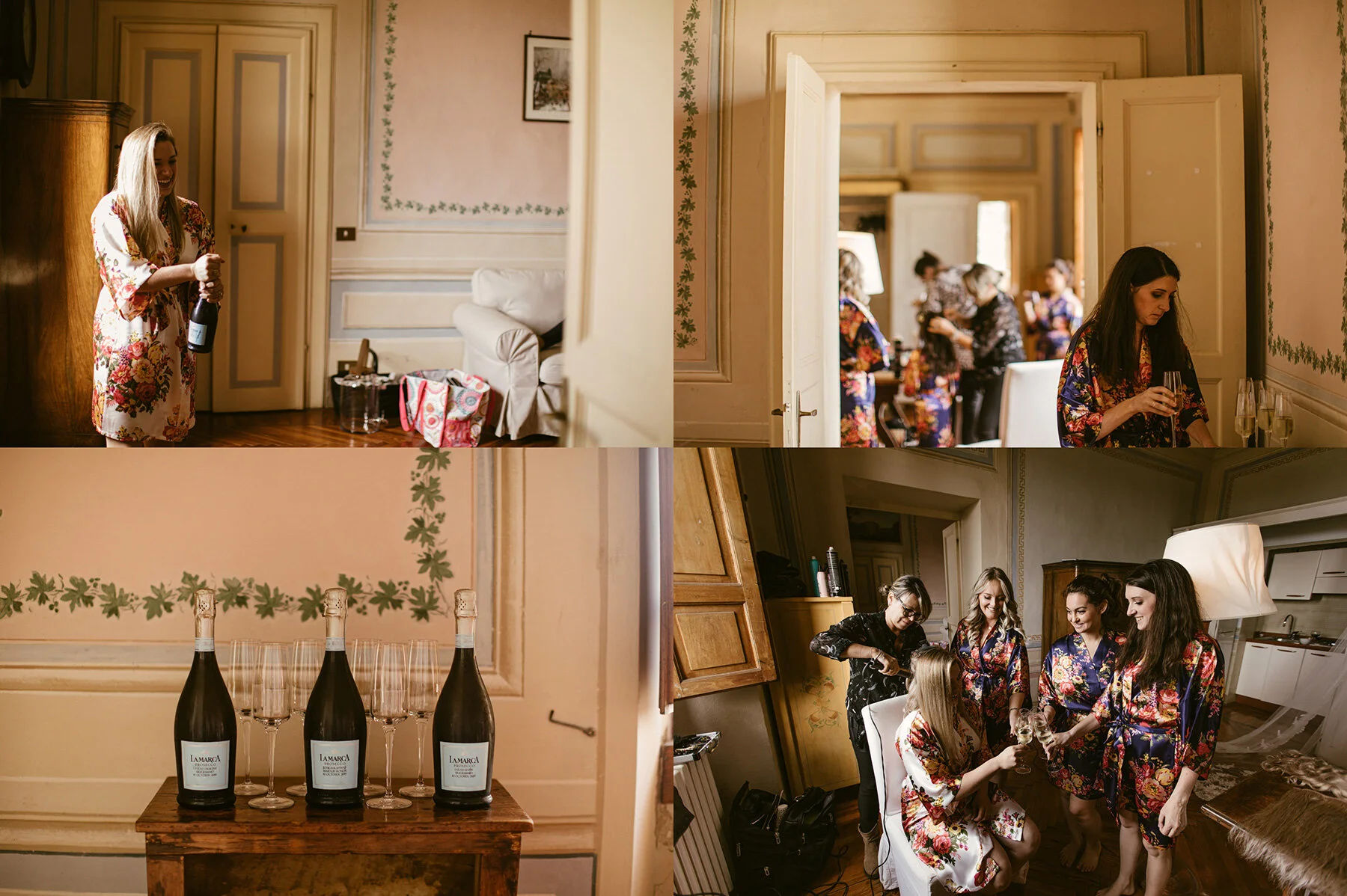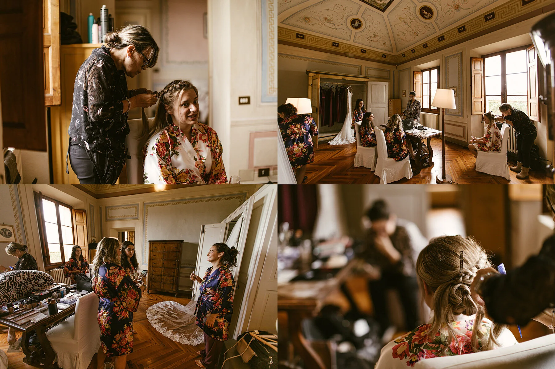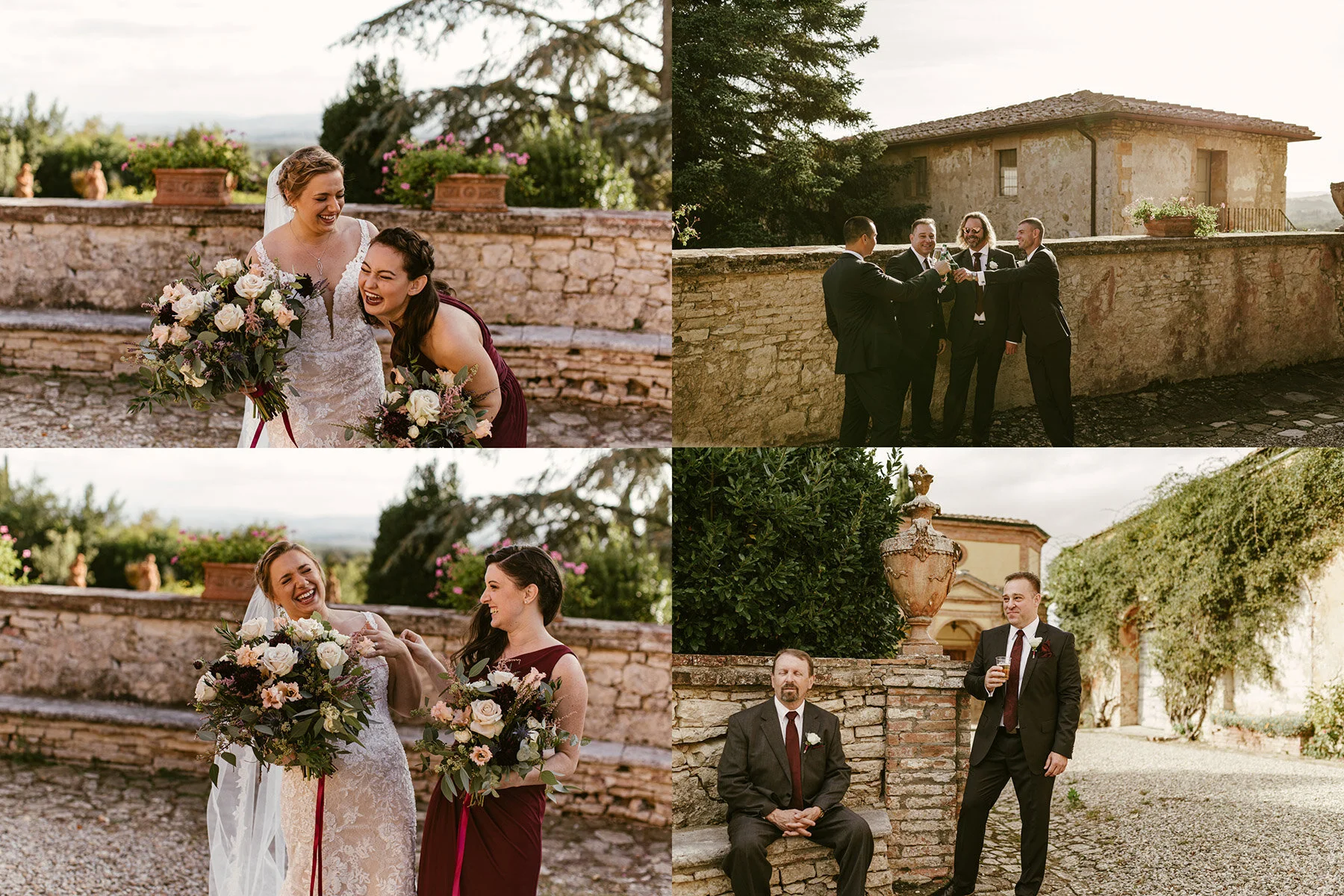 The next day came quickly and it was soon Kyla & Walt’s WEDDING DAY at Villa Catignano! What had been calling for rain turned out to be a literally perfect day with weather in the upper 70s/ lower 80s F as the sun shined through after the clouds parted! Kyla and her bridesmaids started the day getting ready with a professional makeup artist and professional hair dresser in the bridal suite 3 room/ 2 bathroom suite that would later serve as Kyla & Walt’s room! Walt and groomsmen got ready in the room immediately next door, so we had to make sure to be careful closing doors and making sure that Walt wasn’t leaving the room too often.