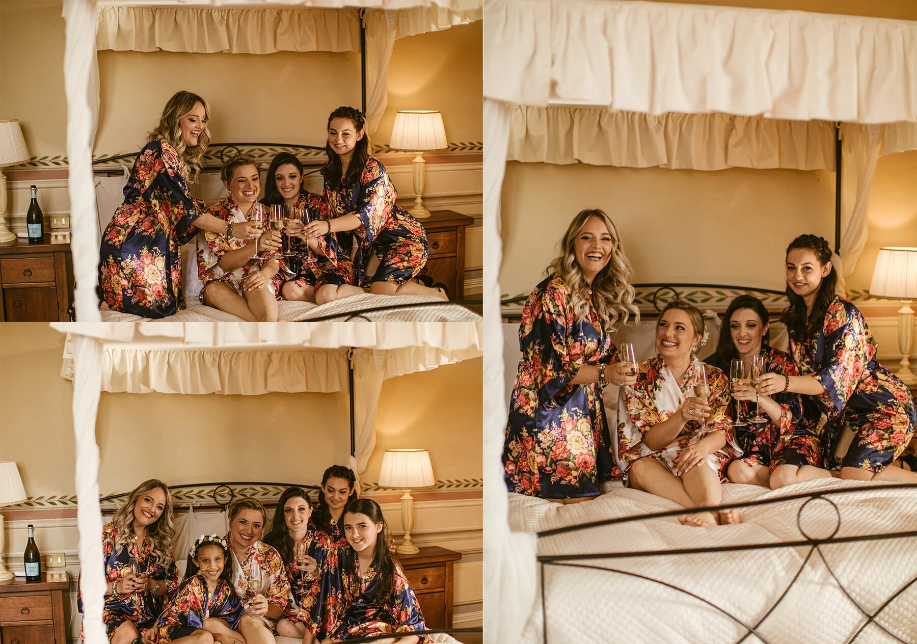 Walt and the groomsmen were ready on time, but the pastor was a bit late, so they headed down to the ceremony early. Once Kyla and all of the ladies had their hair and makeup finished, they enjoyed the final bit of prosecco, the ladies got their dresses on, and it was time for Kyla to get her wedding dress on!