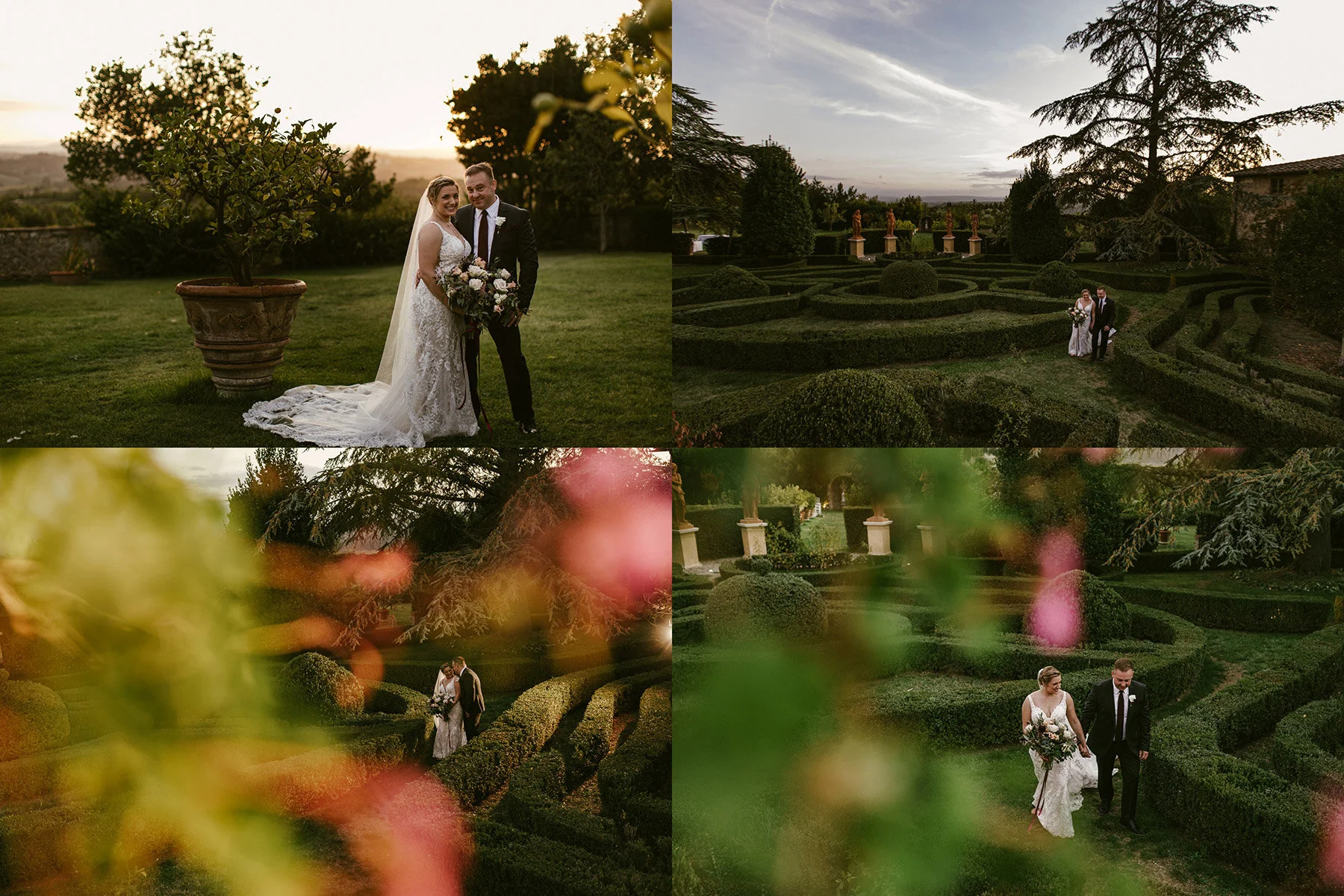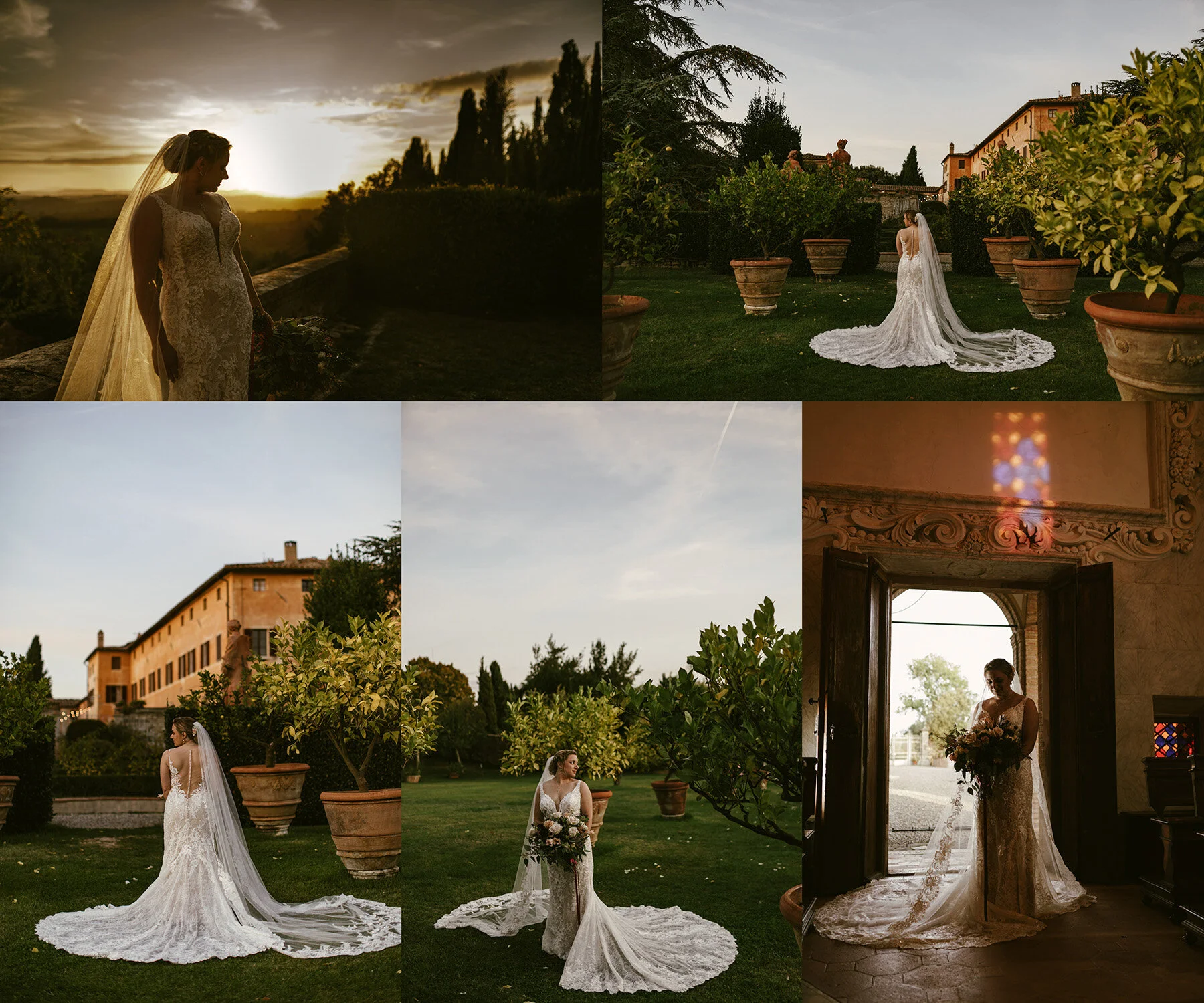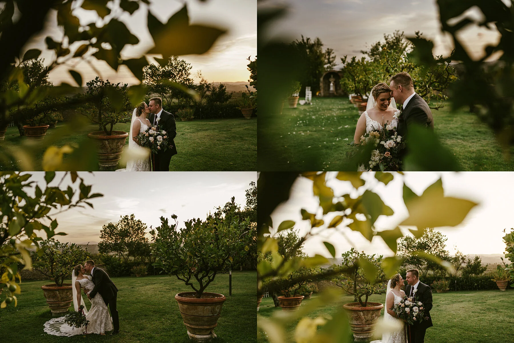 We had them head in the little chapel at the villa for some quick portraits, then headed over to the perimeter of the property for some portraits of them by the valley at sunset!