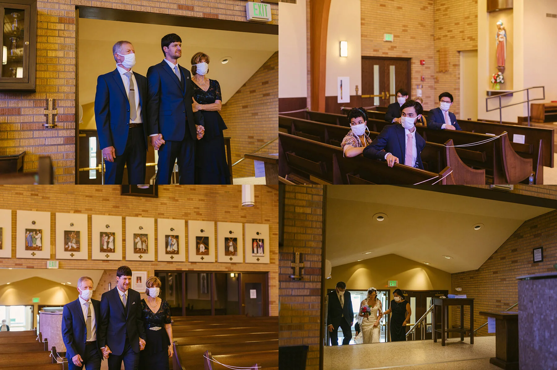Their families were fully masked up in matching white masks that Marisa & Erik bought for their wedding day (and Marisa & Erik even hand stamped their own with their names/ wedding information)! Their parents gave readings throughout the mass AND even their priest had a personal connection to them (which we’ll explain in a bit).