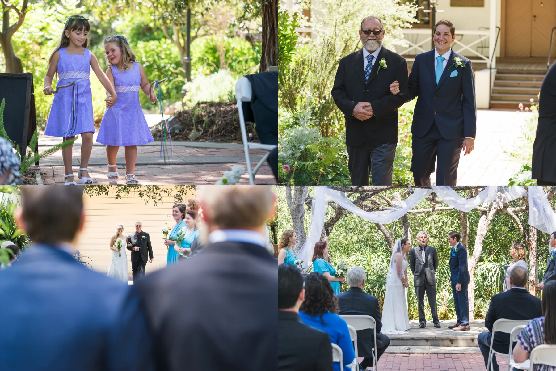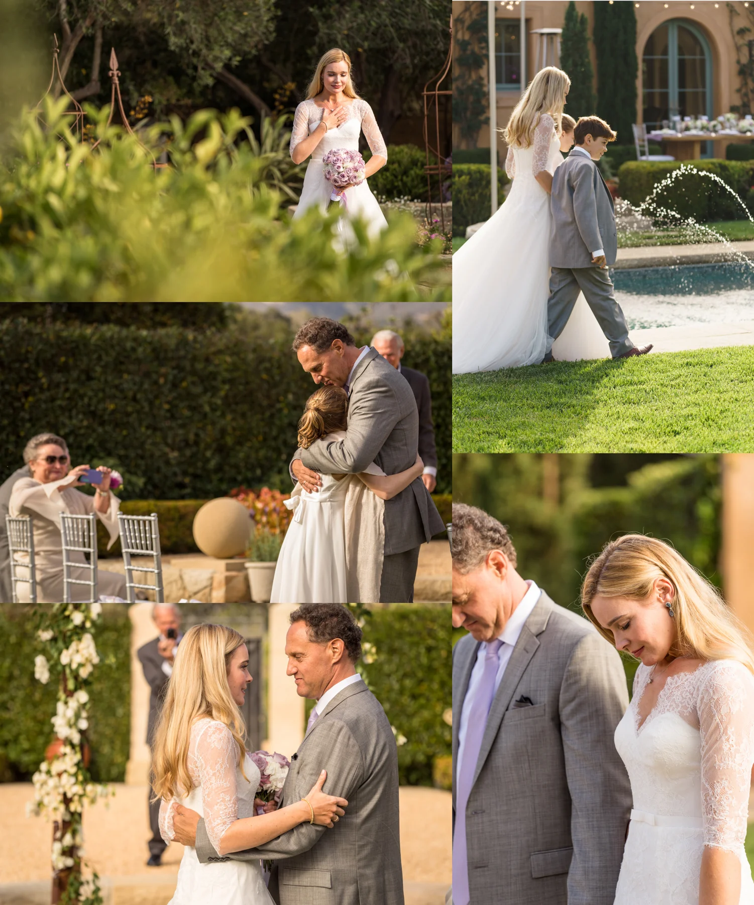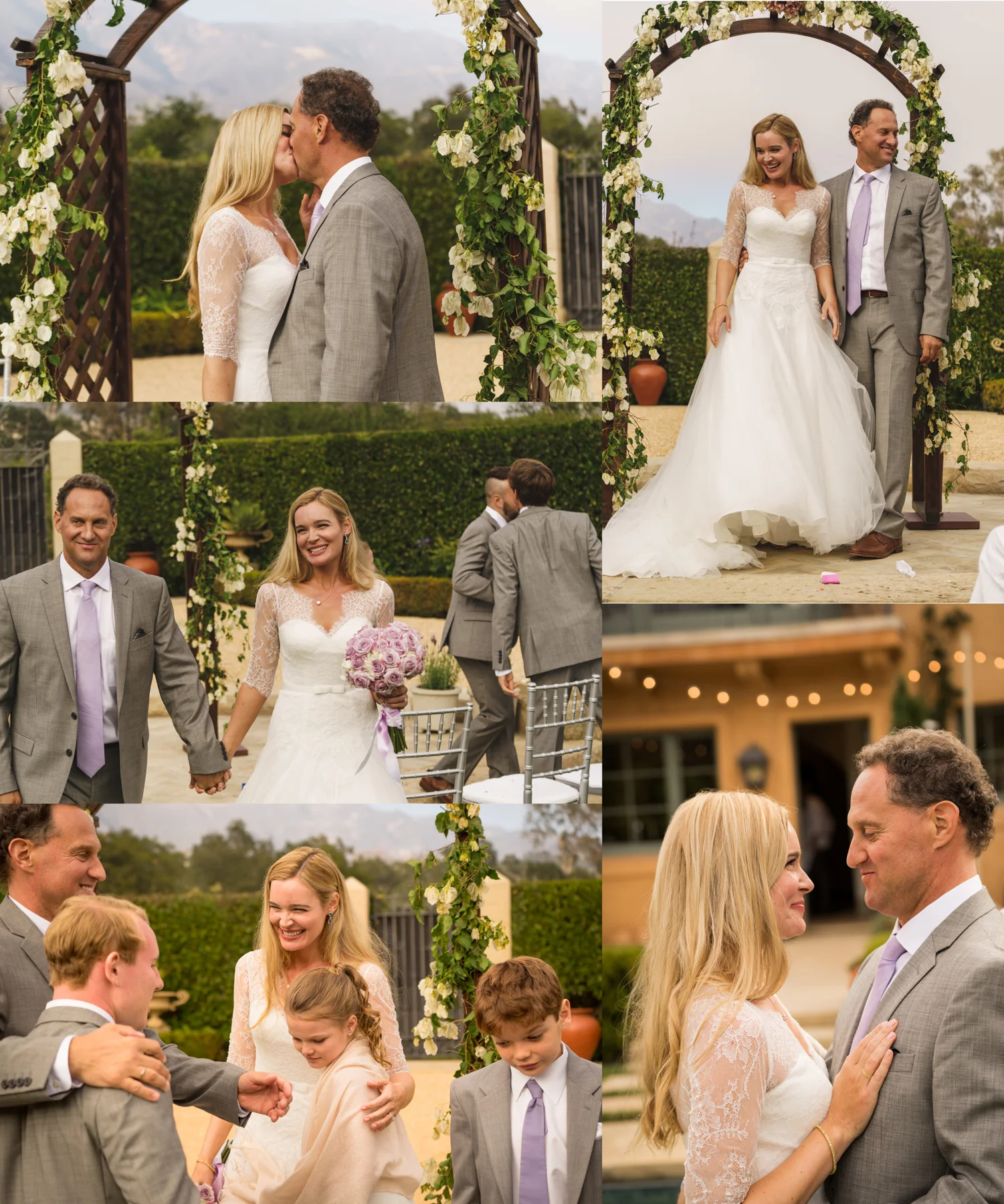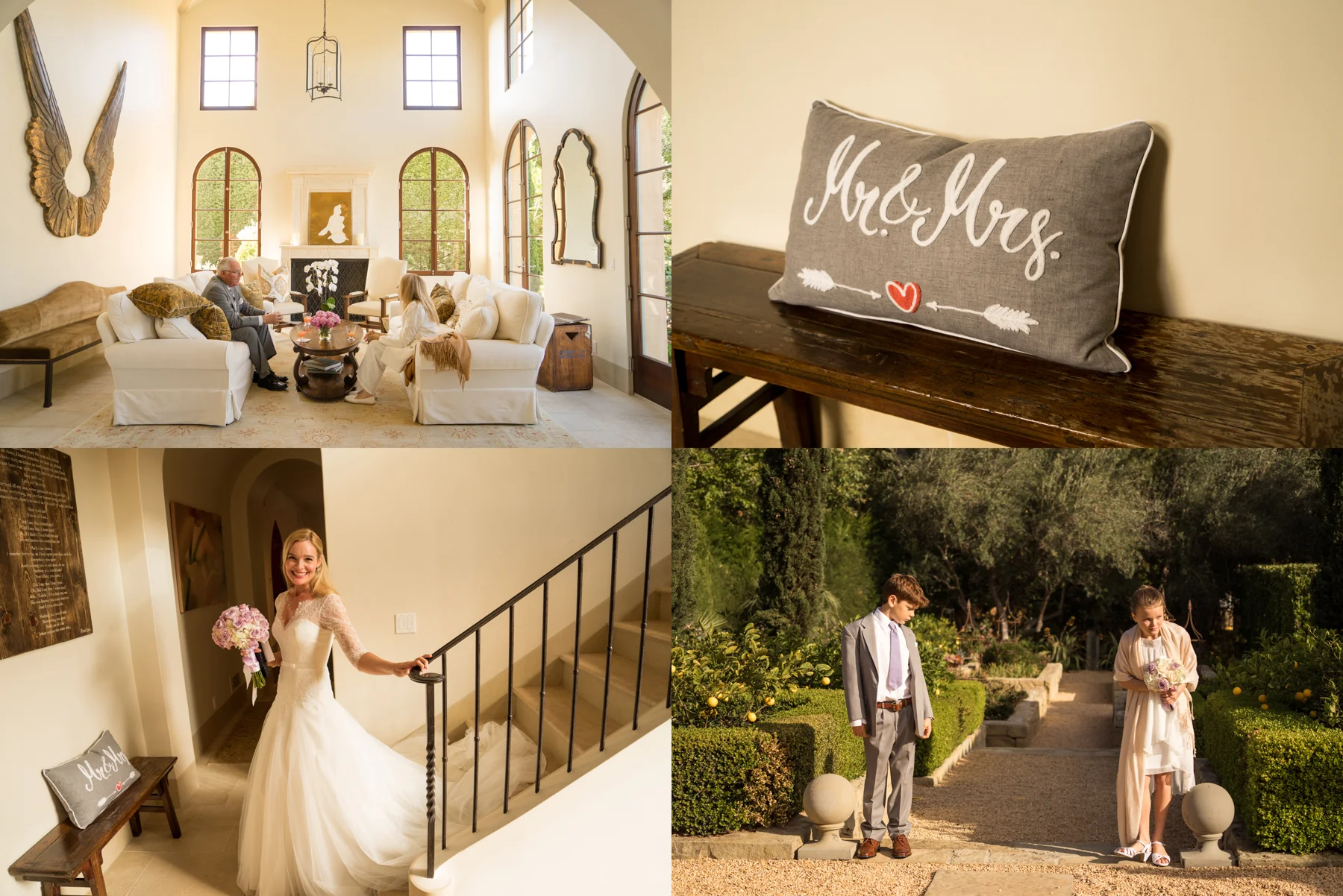 For their wedding day Karen and Jamie opted to have their ceremony and reception at their gorgeous home in Montecito, CA and it was a great choice for their intimate wedding day! The whole day heavily involved their immediate family with their kids playing a huge part in the melding of these two in marriage which was a gorgeous thing to witness. A couple of their kids even led Karen down the aisle to Jamie as their children were seated front & center at their home ceremony.