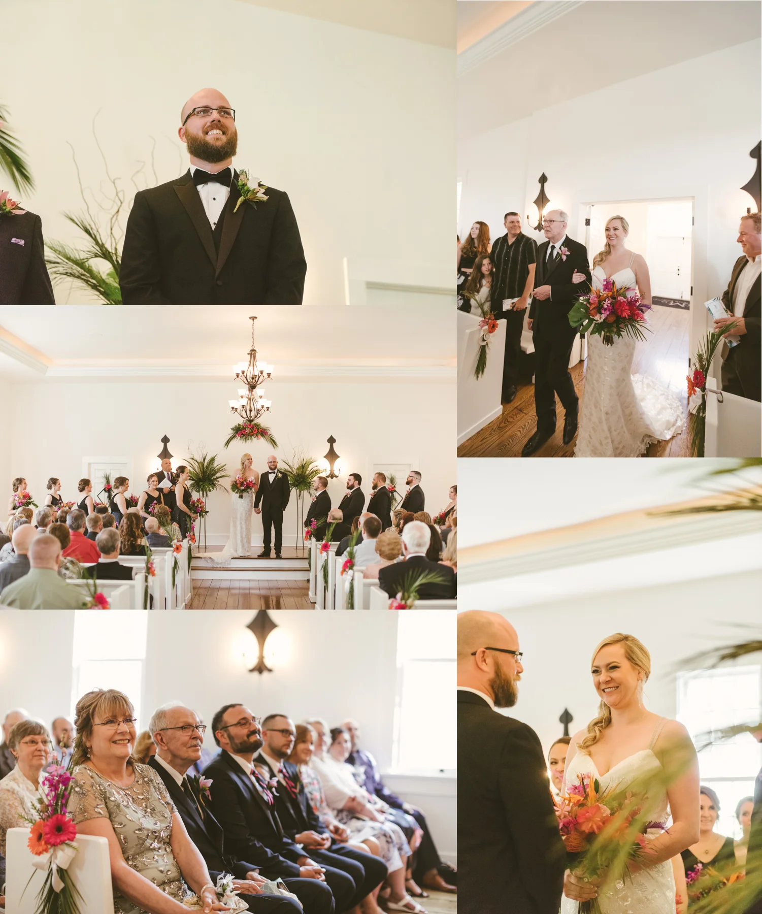 On their wedding day these two both got ready in the adorable chapel in rooms down the hall from one another. When it came time for their ceremony they just had to walk up a small amount of steps to a packed ceremony with all of their loved ones!