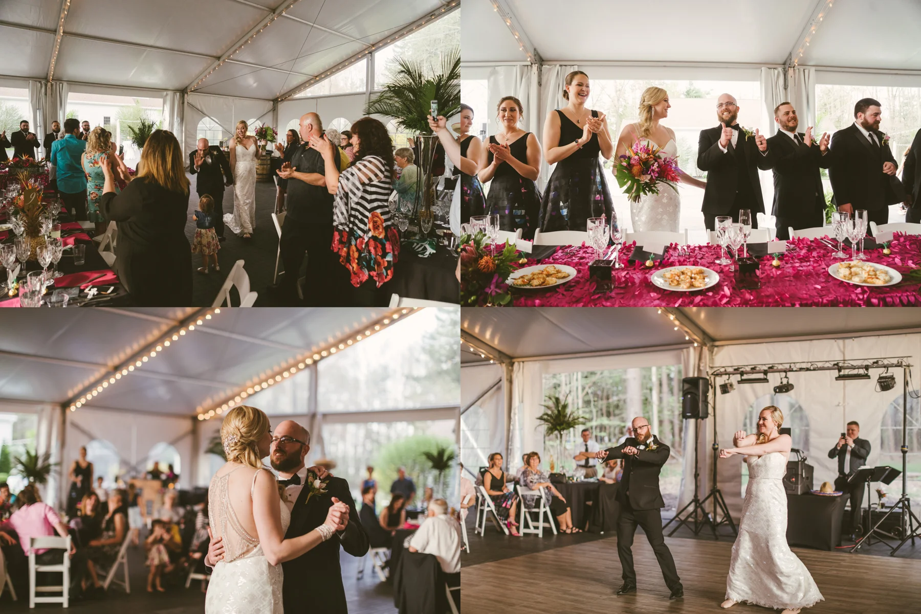 Eileen and Dustin were announced in to their reception and soon after went into their First Dance. Eileen is a dance teacher on top of her family business, so she choreographed an amazing dance for these two that started off classic and ended with some fun fanciful dance moves!