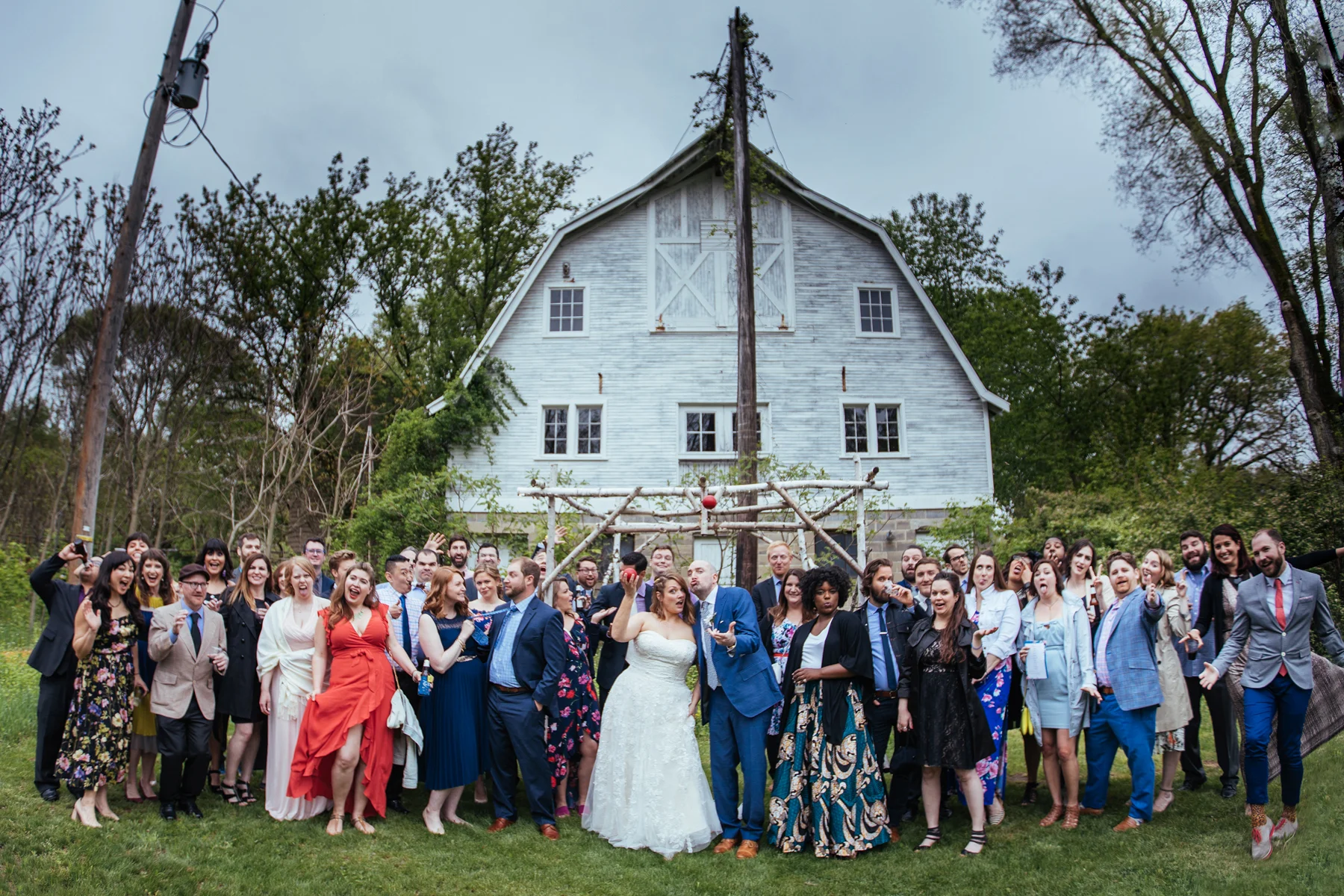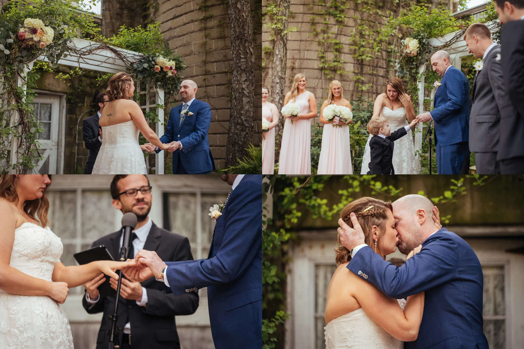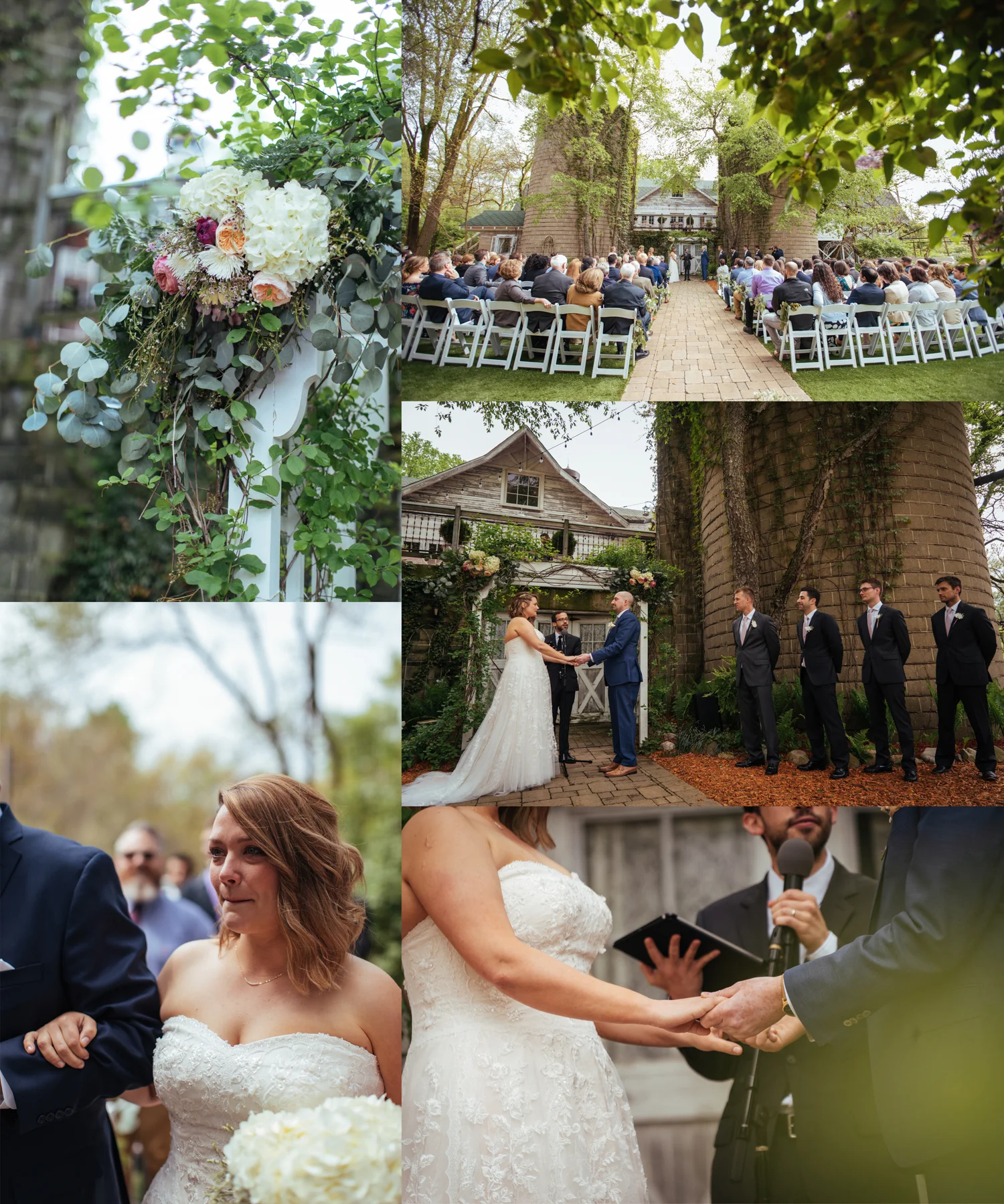 There are two spots for couples to get married at the Blue Dress Barn and these two picked a gorgeous spot for their wedding vows! They were surrounded by ivy, blooming trees, a beautiful barn, and most importantly all of their loved ones!