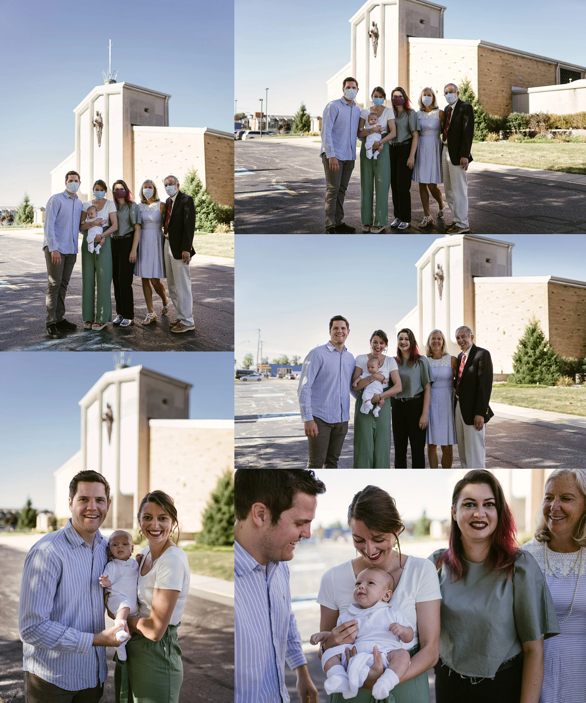 …and then headed outside for some family group Baptism photos masked, then unmasked (since we’ve all been quarantined, medically masked up for 6 months, and have only been in each other’s homes over the past couple months of 6 months of no socializing). Little Nash did a great job and seemed happy after his Baptism!