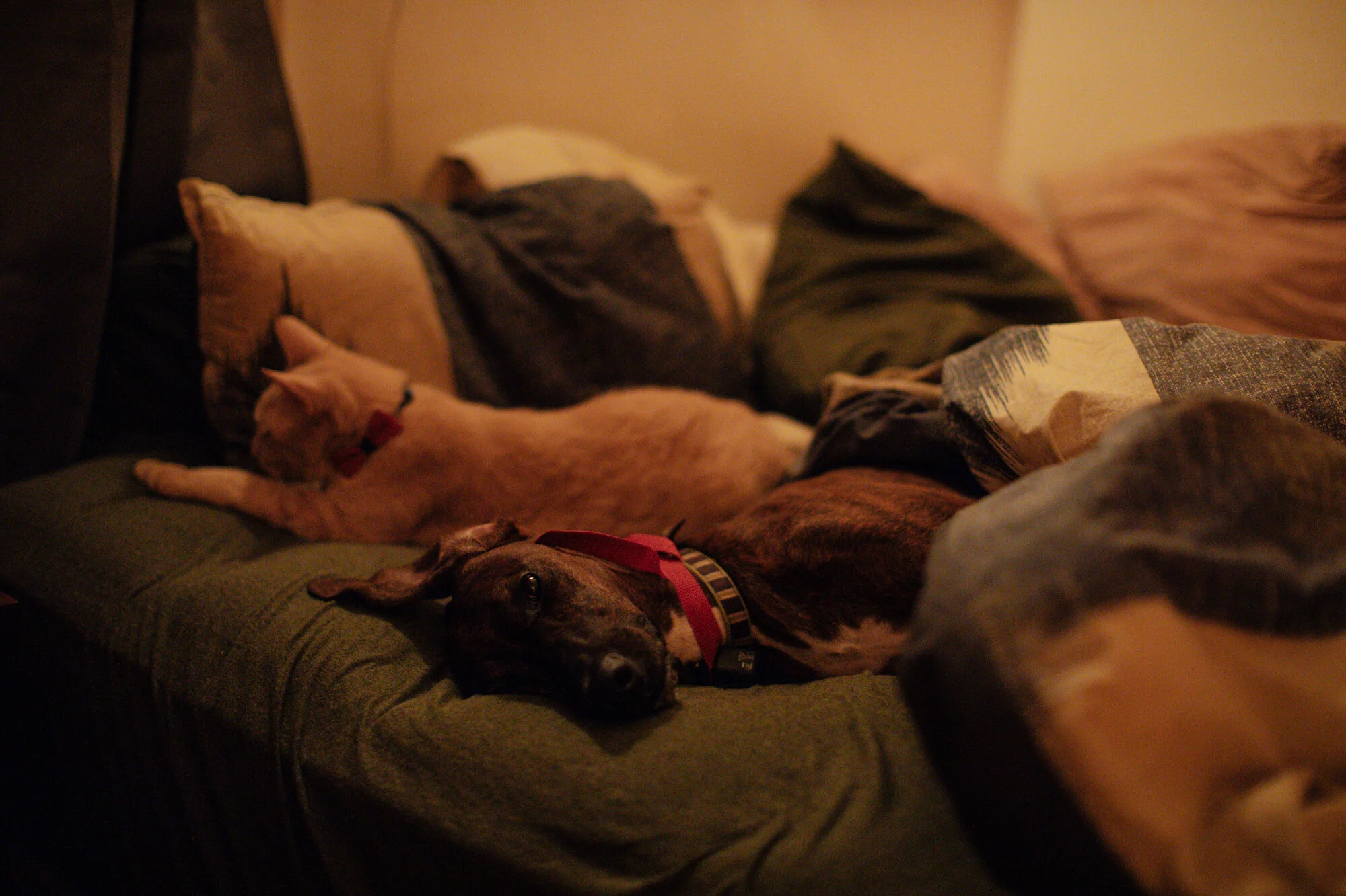 Our cat Kevin is potentially somewhere between 12 and 16 years old and we’ve had him for 5 years, our dog Coco is around 6 years old and we’ve had her for 4 years, and our dog Rizzo will turn 1 year old in a month and by then we’ll have had her for 10 months-!! We rescued all 3 of these these cute mixed babies from 3 different rescues in 3 cities and they are our fur children. We’ve taken them to 6 states with us so far and have so many more adventures to take them on with us-! They’ve been a huge part of our past 6 years together and they’re our little family. Here are some photos of them that we’ve taken just in the past year: