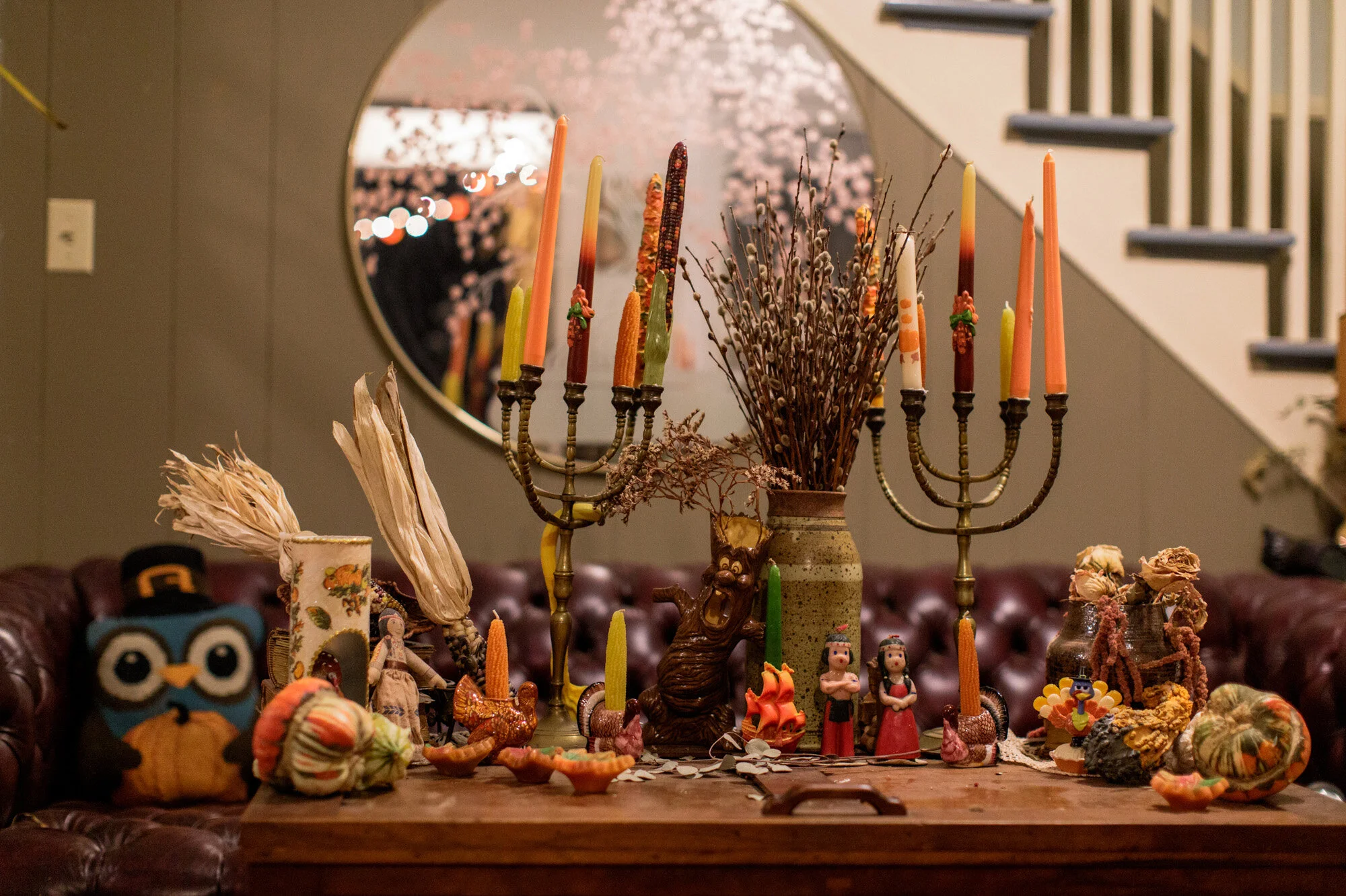 We wanted to hop on here to wish you a Happy (Socially Distanced) Thanksgiving since it’s TOMORROW-!! With this blog we wanted to share with you our vintage Thanksgiving decorations that bring us joy daily (as we did with our Easter decor and Halloween decor this weird, painful, stressful, and sometimes lonely Pandemic year).