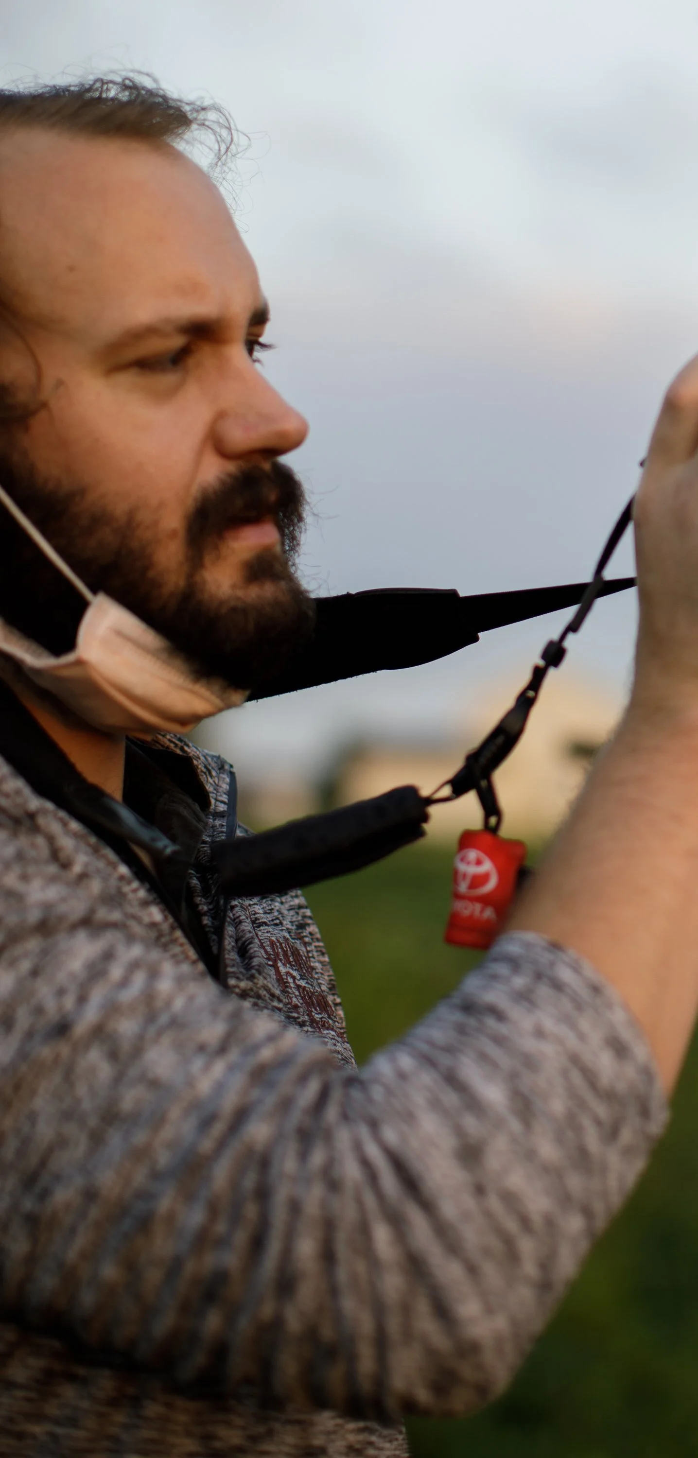 During one day of photographing one of these Child Adoption Portrait Sessions (the below photograph) we were captured before heading home for the evening.. As you can see, we always wear our medical masks to keep all of the kids (as well as our other clients) safe-! Since these Sessions are 30 minutes short and are outdoors we opt for surgical masks for these Portrait Sessions for the non-profit, though we always wear our KN95s or surgical masks for weddings and Portrait Sessions for our own Jenny and Jason Photography clients as well (just to play it safe for everyone).