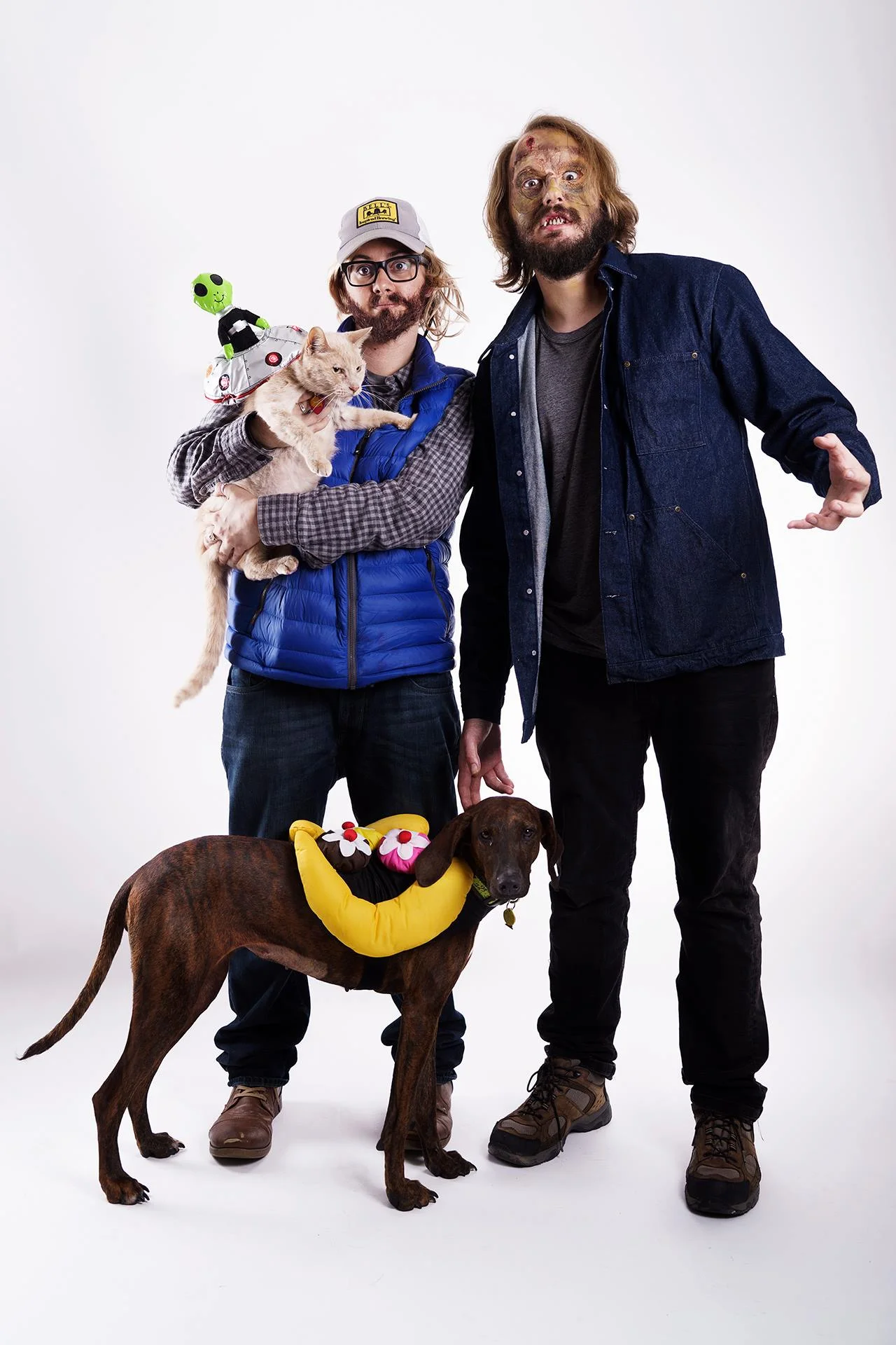 Steph & Chris have two sweet little girls who were pretty funny to work with. Their family reminded both of us of our families: We both only have one sibling of the same gender who is close in age just as Steph is with her sister Missy. (Having a constant buddy/ partner-in-crime as a kid is pretty fun!) The girls took a little bit to warm up to us in the quick Session (as with most kids who are staring down the barrels of large camera lenses being wielded by strangers), but by the end they were throwing leaves and giggling on their parents' shoulders!