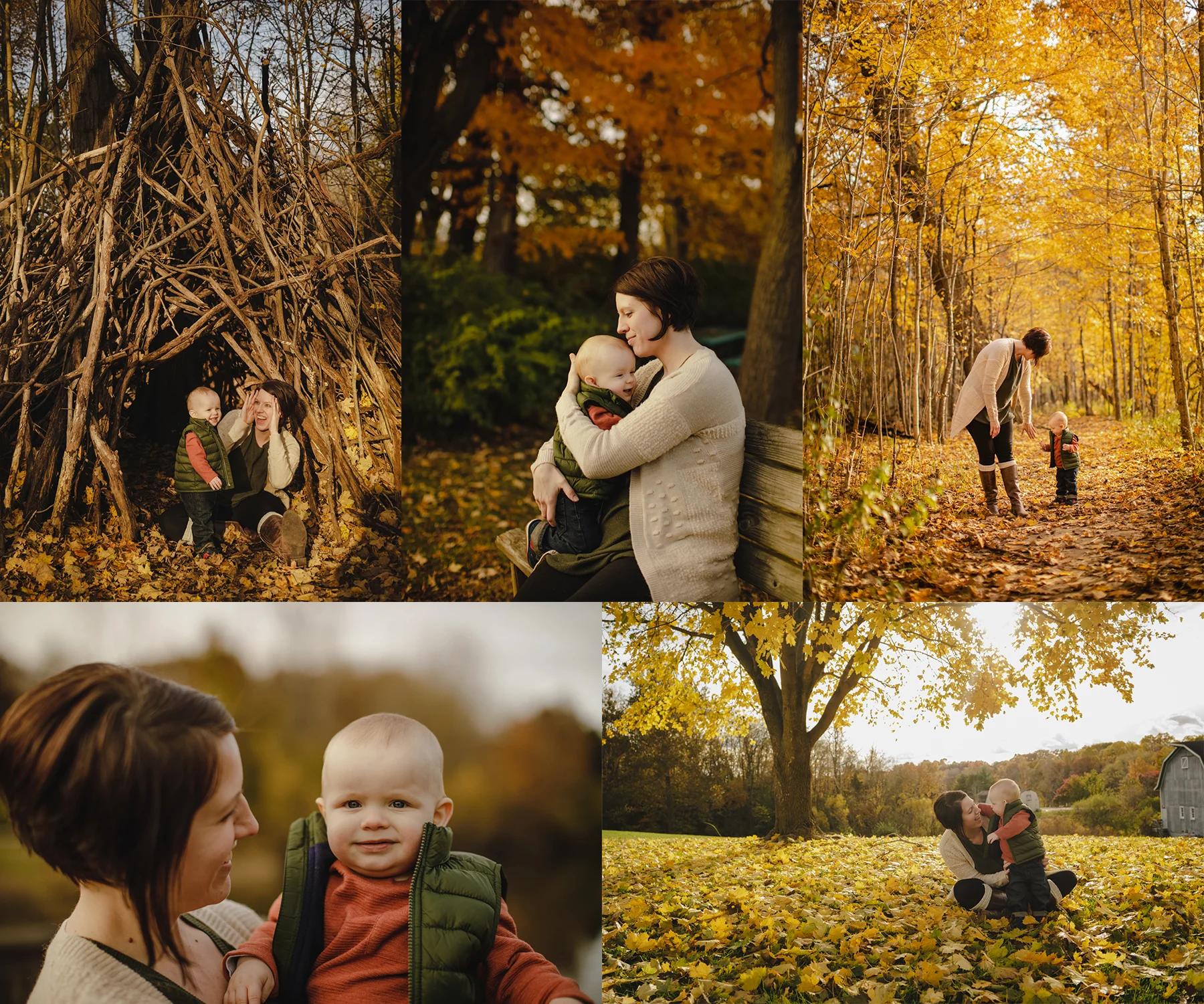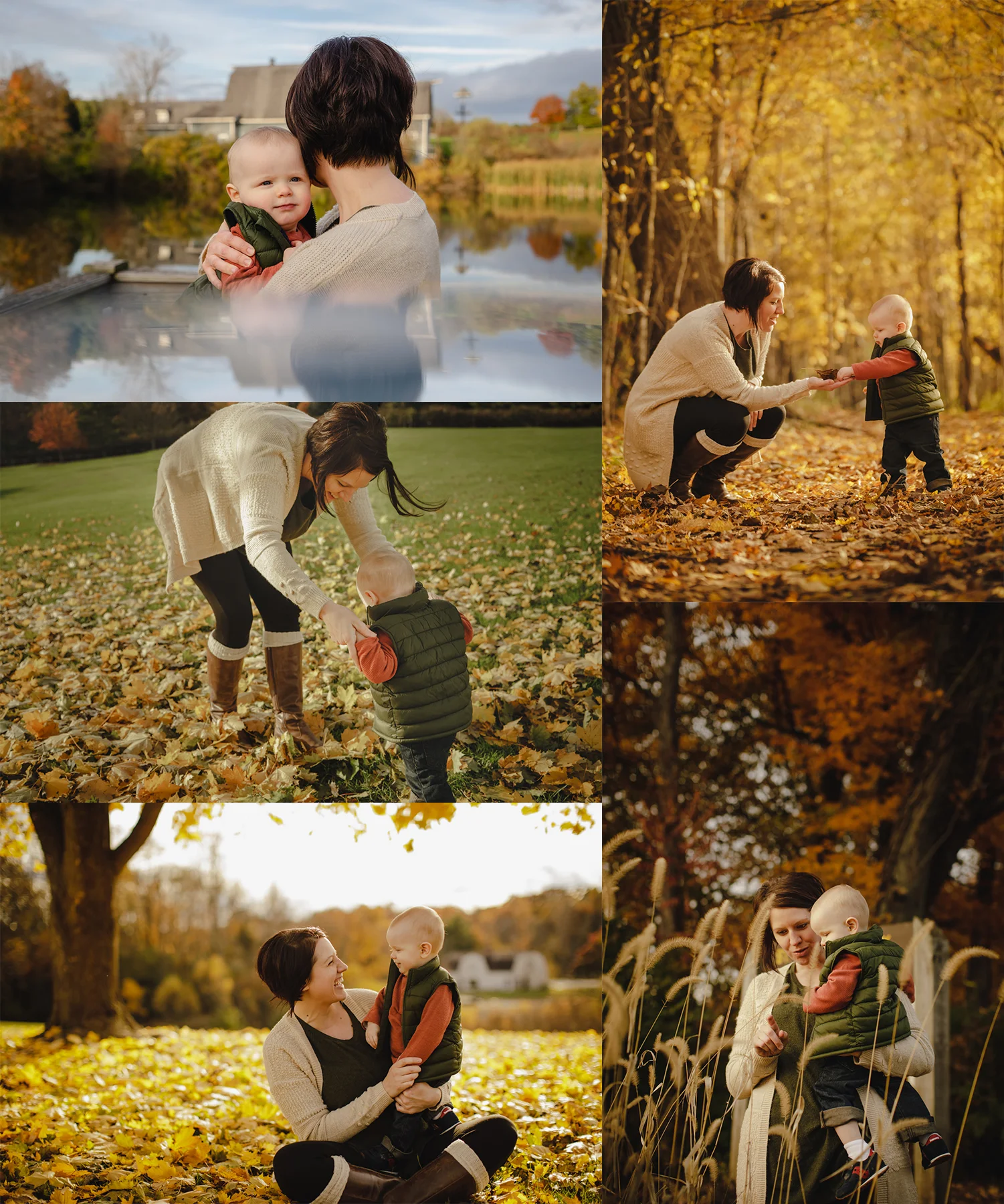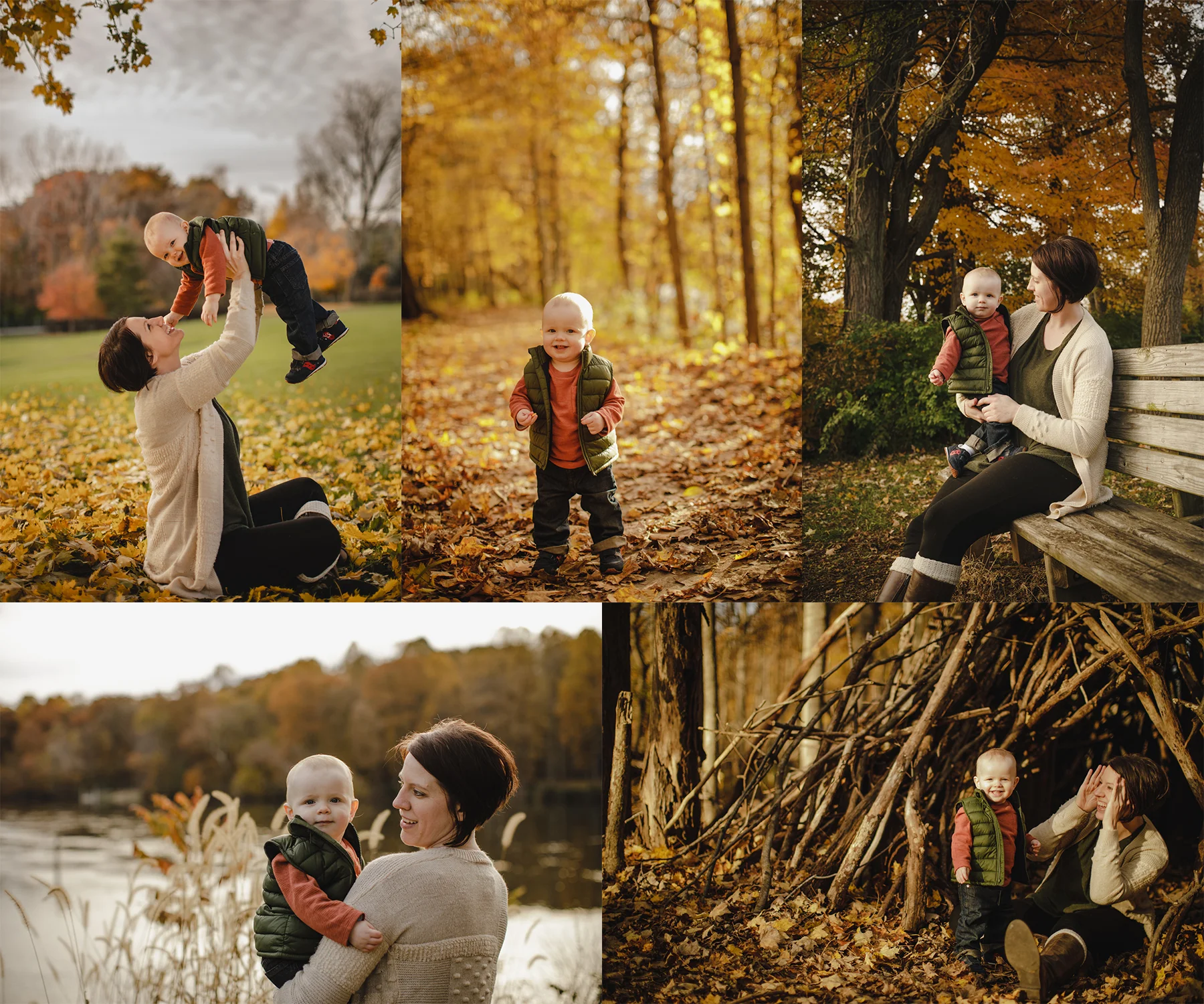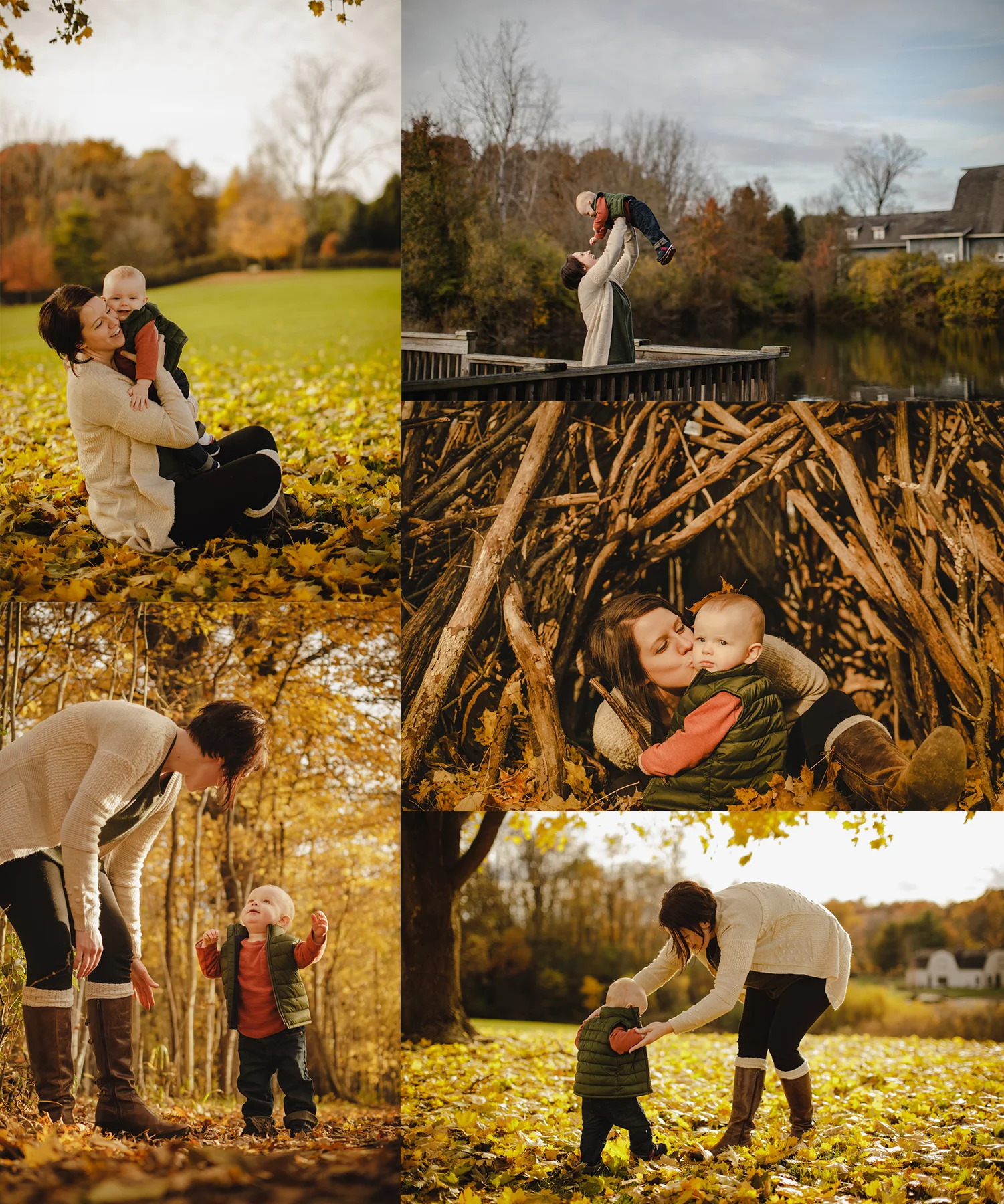 We thought that on the eve of Thanksgiving that nothing would be more fitting to share than a recent Fall Family Portrait Session that we captured! The mom pictured in this blog (Katie) didn’t know us, but reached out to us a few months ago in August telling us that she was interested in having a Family Portrait Session taken of she and her 1 year old son Andrew this fall! She envisioned a nice Fall Session with beautiful fall colors as she and Andrew played around in nature, so we were excited to set up the Autumn Sunset Session for these two for the start of November. Katie had the week off of work, so when we had rain on her Family Portrait Session evening, we were luckily able to squeeze her in for her Session the next evening right before Jenny ran off to coach!